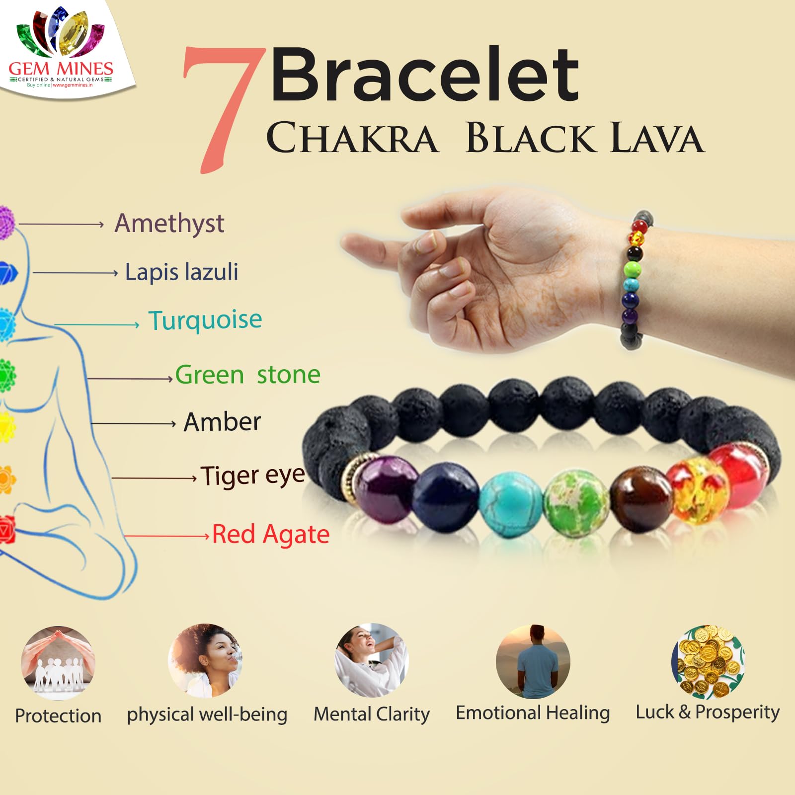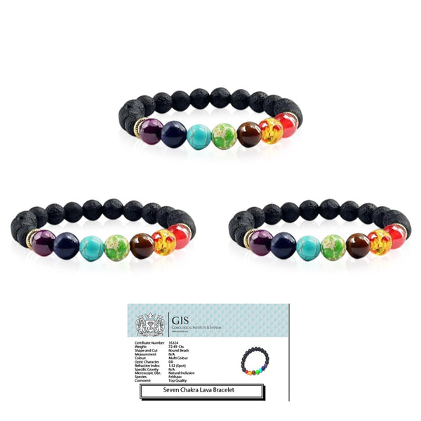 GEM MINES Pure Gems Natural 7 Chakra Lava Bracelet provided with certificate Original for both Men and Women (Pack of 3).