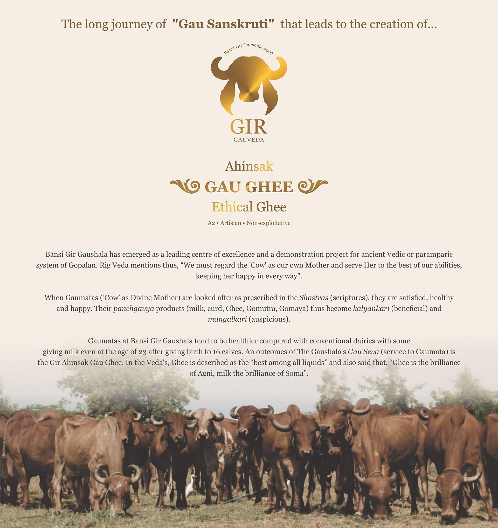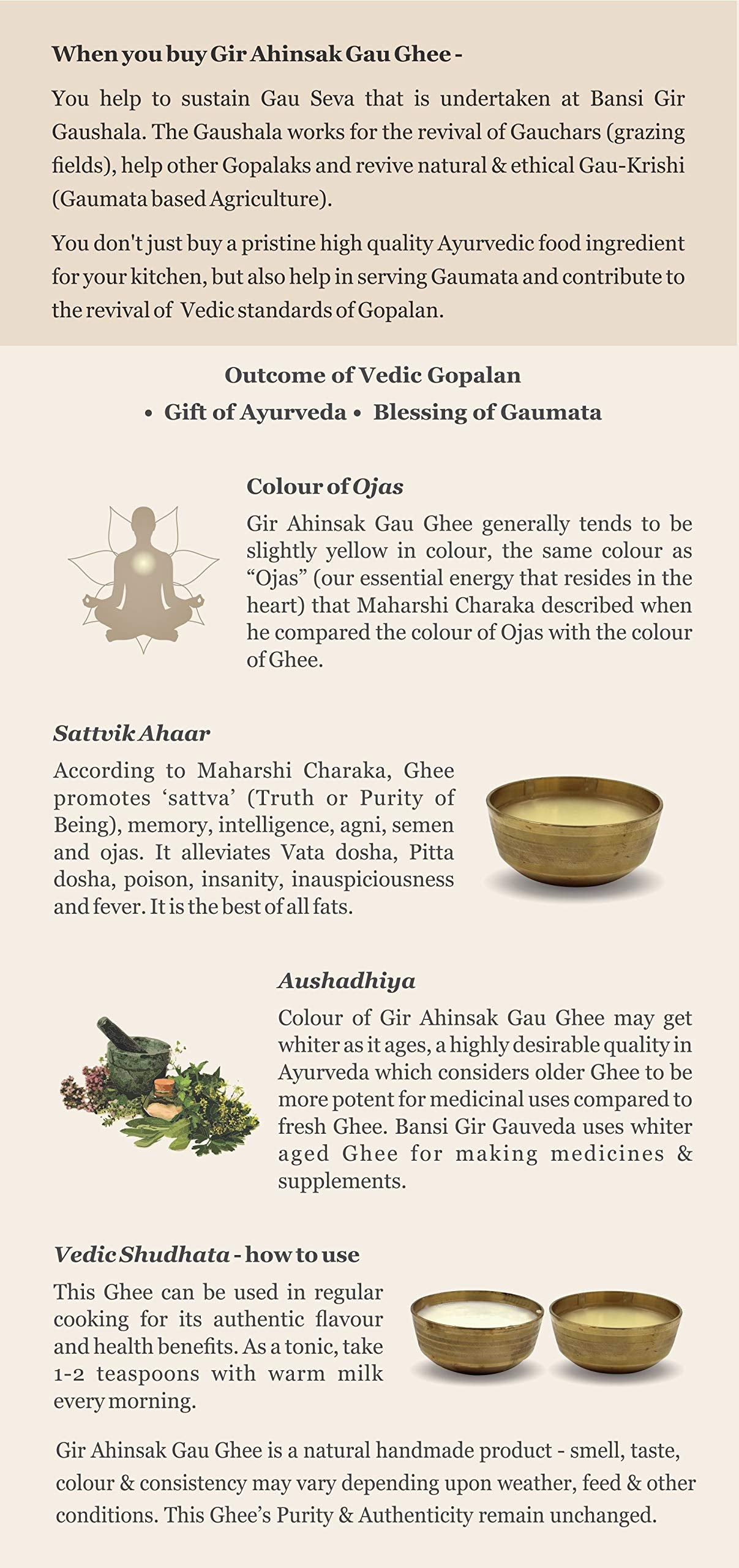 GIR Ahinsak Gau Ghee Vedic, Ethical, Desi Pure Breed Gaumata (A2), Bilona, Grass-Fed, Non-Gmo Good For Health, 500 Ml