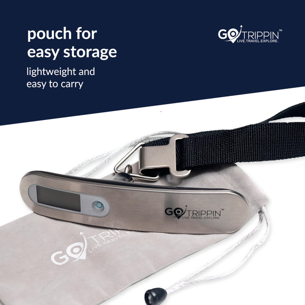 - MULTIFUNCTION INDICATORS: auto shutoff, auto-lock display; battery indicator; easy-to-read LCD display with back light for night vision; this weight machine for luggage also has Tare function which allows you to read the net weight of your luggage easily and precisely; Gotrippin digital weight machines thus are very easy to use. There are 4 kinds of weight units(lb, g, ounce, kg)in this travel luggage weighing scale digital that you can use in most of the countries