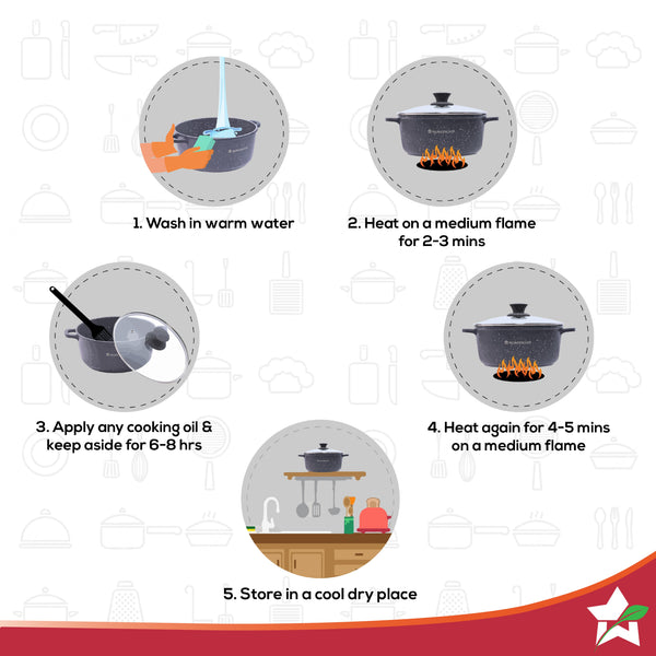 Granite Die-cast Non-stick Casserole Set, 6Pc (1150ML, 2000ML, 4500ML) With Lids, Induction Bottom, Soft Touch Handles, Pure Grade Aluminium, PFOA/Heavy Metal Free, 2 Years Warranty, Blue
