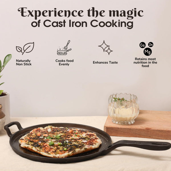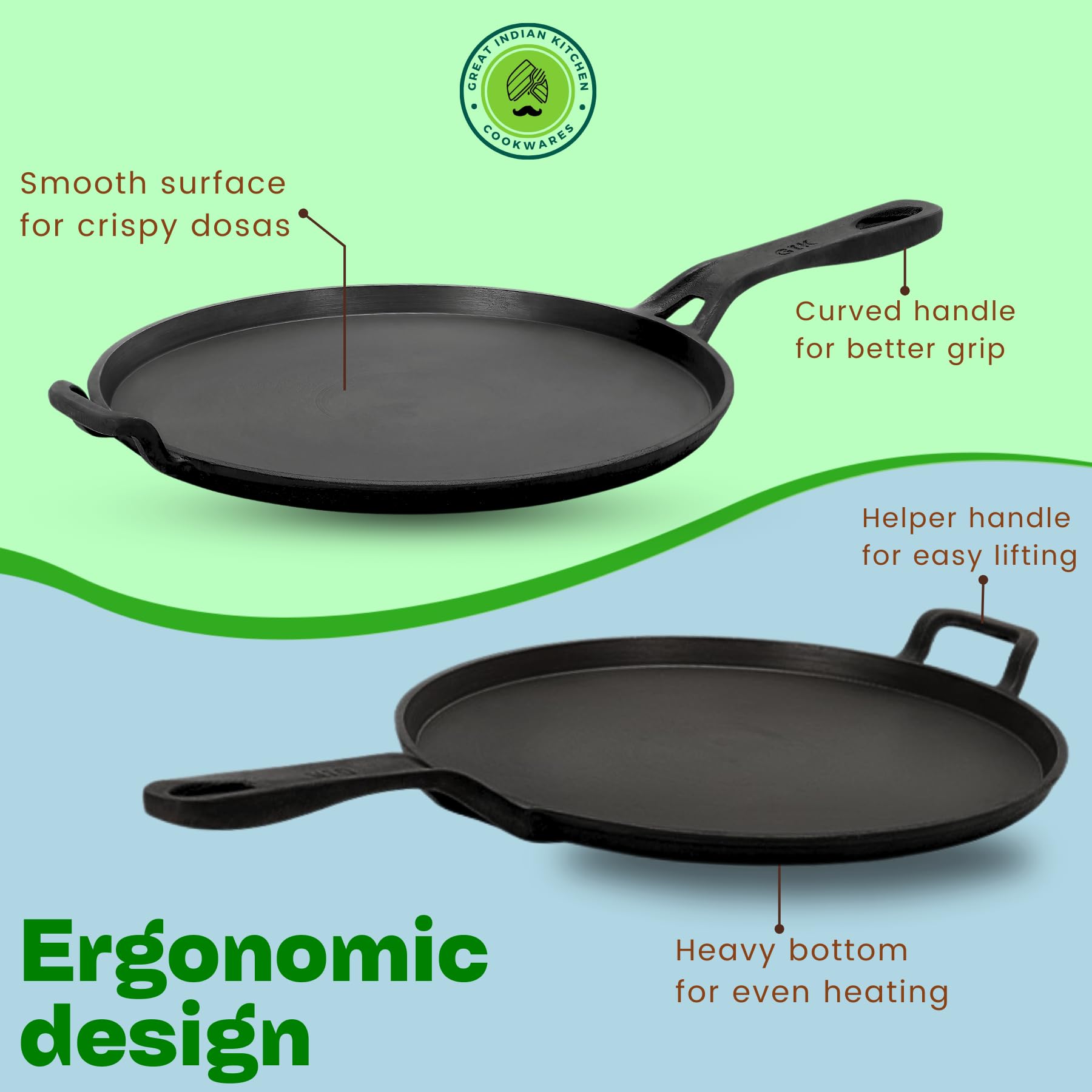 - 🍳LONG LASTING FOR GENERATIONS - The cast iron tawa for dosa is heavy duty & long lasting, Once you bought our cast Iron tawa you never have to buy another dosa tawa in your lifetime.