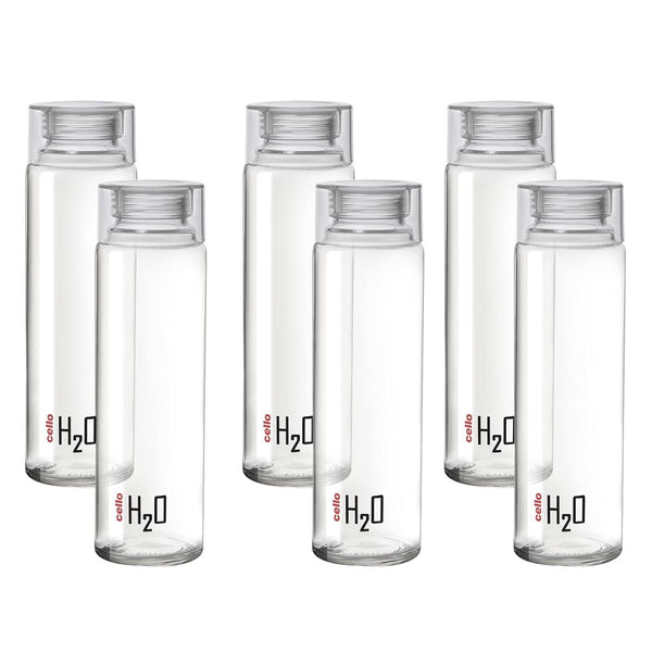 Introducing the H2O Glass Water Bottle, available in a variety of pack sizes (1 Piece, 3 Pieces, or 6 Pieces) and stylish colors including Black, Blue, Clear, and Red. Crafted from 100% food-grade sodalime glass, this 920ml bottle combines high clarity with portability, fitting easily into your backpack to keep you hydrated on the go. Safe for water and juice consumption, it's free from chemical leaching and reactions with your beverages. Made in India with superior quality materials, this trendy and sporty glass bottle is designed for durability, featuring a BPA-free, food-grade see-through plastic cap. Its lightweight and compact design fits perfectly in fridge door pockets while providing a secure grip. Sustainable and odor-resistant, it ensures your beverages remain healthy and safe, with a wide mouth for easy pouring, cleaning, and maintenance. Stay refreshed and stylish with the H2O Glass Water Bottle.