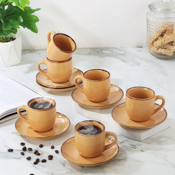 The Hampshire 6 Pieces Ceramic Cup & Saucer set offers a delightful blend of elegance and functionality. Crafted with fine ceramic material, this set is designed to enhance your tea or coffee-drinking experience. The classic design and smooth finish make it suitable for both everyday use and special occasions. Each cup and saucer is meticulously crafted to ensure durability and aesthetic appeal. Whether you're enjoying a quiet morning alone or hosting a gathering with friends, this set adds a touch of sophistication to any table setting.