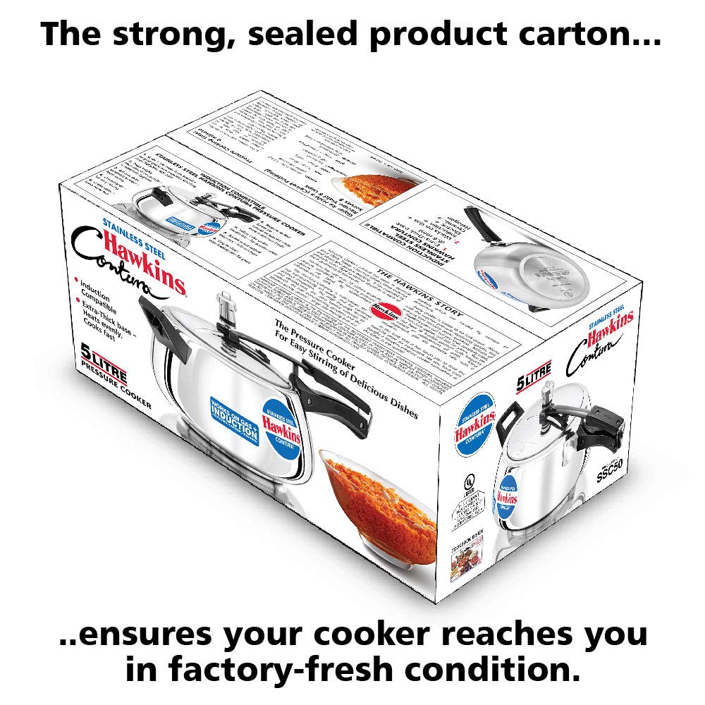 Hawkins 5 Litre Contura Pressure Cooker, Stainless Steel Inner Lid Cooker, Handi Cooker, Induction Cooker, Silver (SSC50)