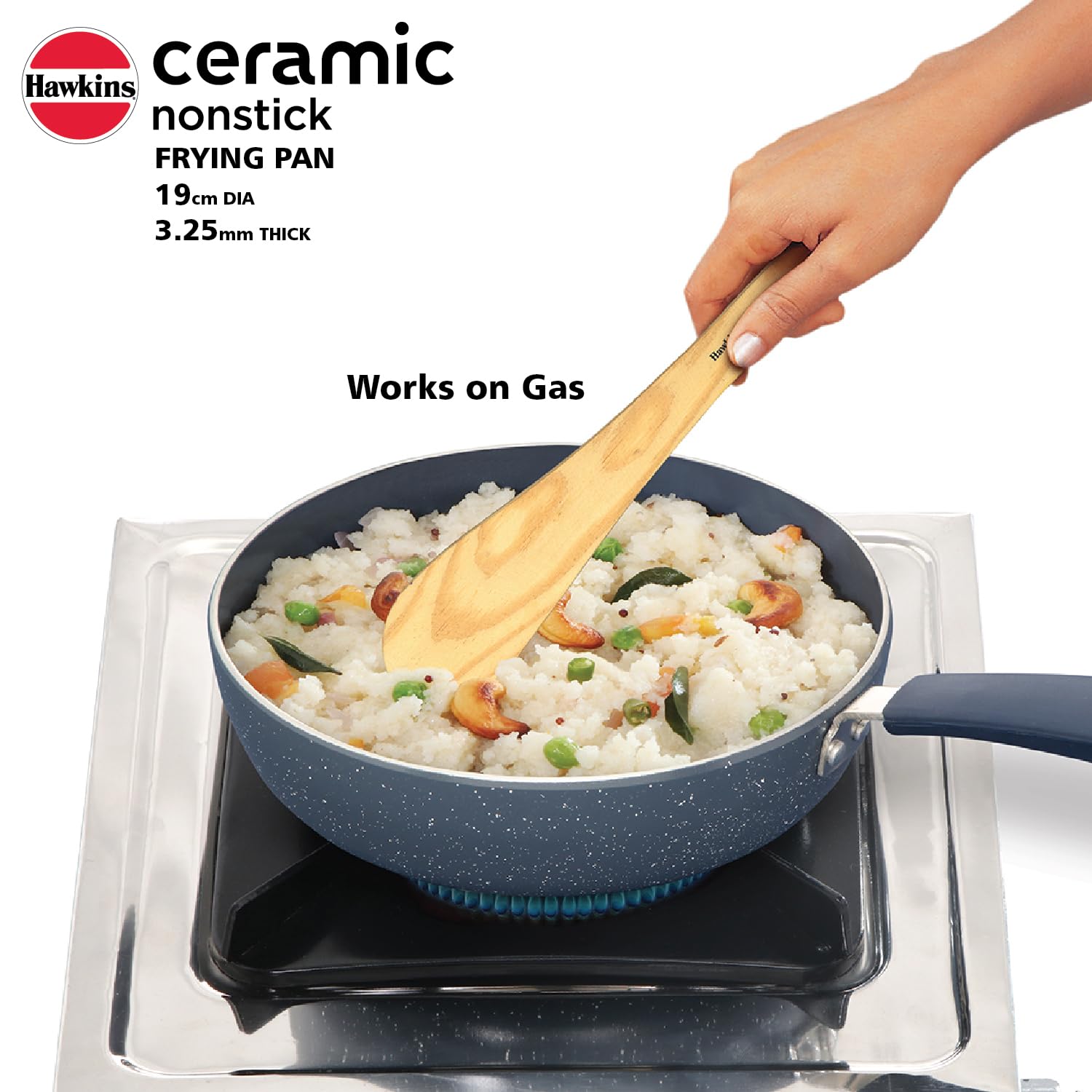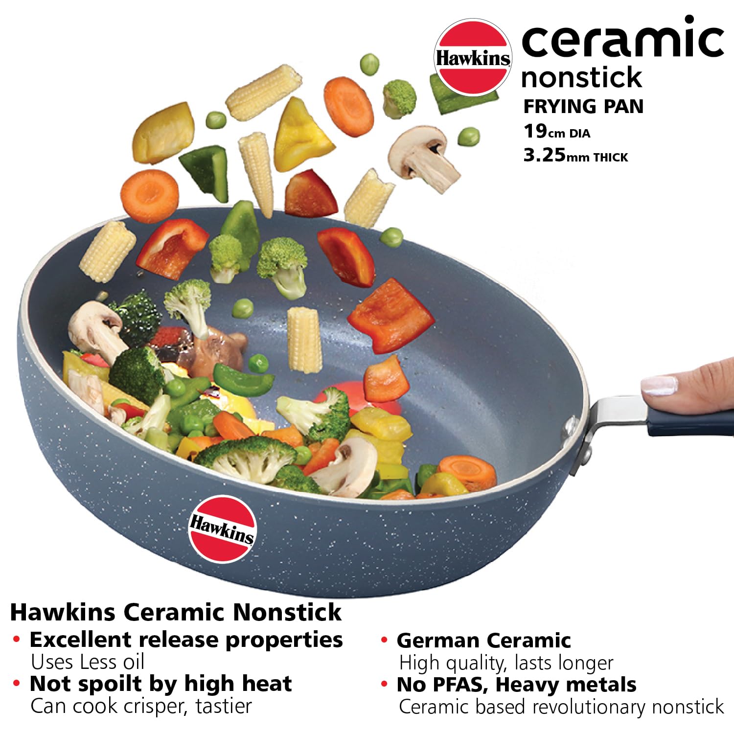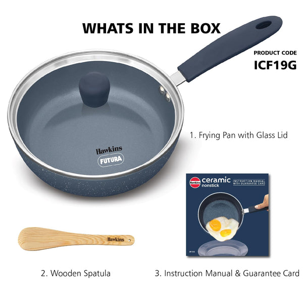 Hawkins Ceramic Nonstick Frying Pan, 19 cm Diameter, Induction Fry Pan with Glass Lid, Granite Omlette Egg Pan, Fish Pan (ICF19G)