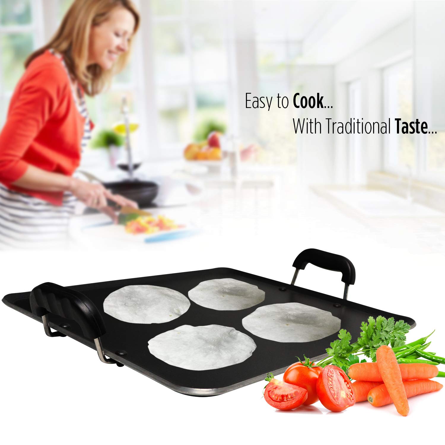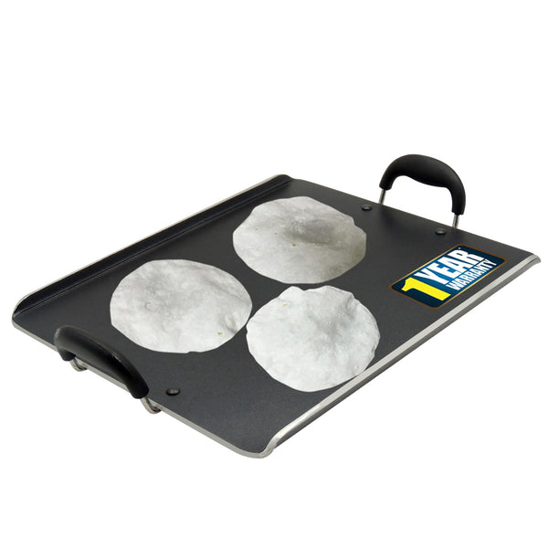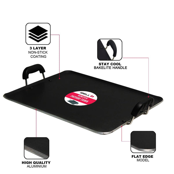 Details: iBELL offers you attractive non-stick aluminium rectangle pathiri tawa with bend edge. Non-stick tawa is excellent for cooking chapati, dosa, pathiri, ..., since it will help the food release easily from the tawa, and it's easy to clean. Its improved coating ensures durability and poses no harm to your food.,
