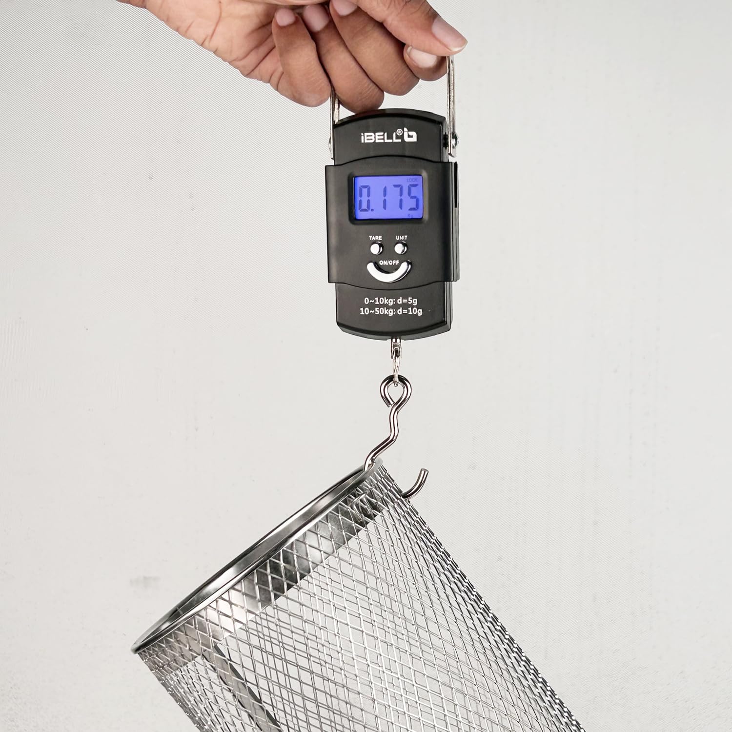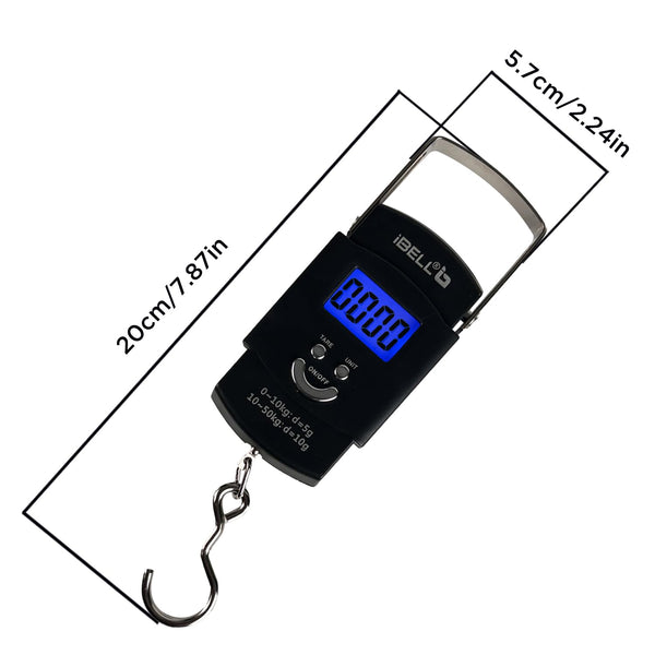 iBELL LS050M Electronic Luggage / Fishing Weighing Scale with Stainless Steel Hook, LED Display & Tare Function.
