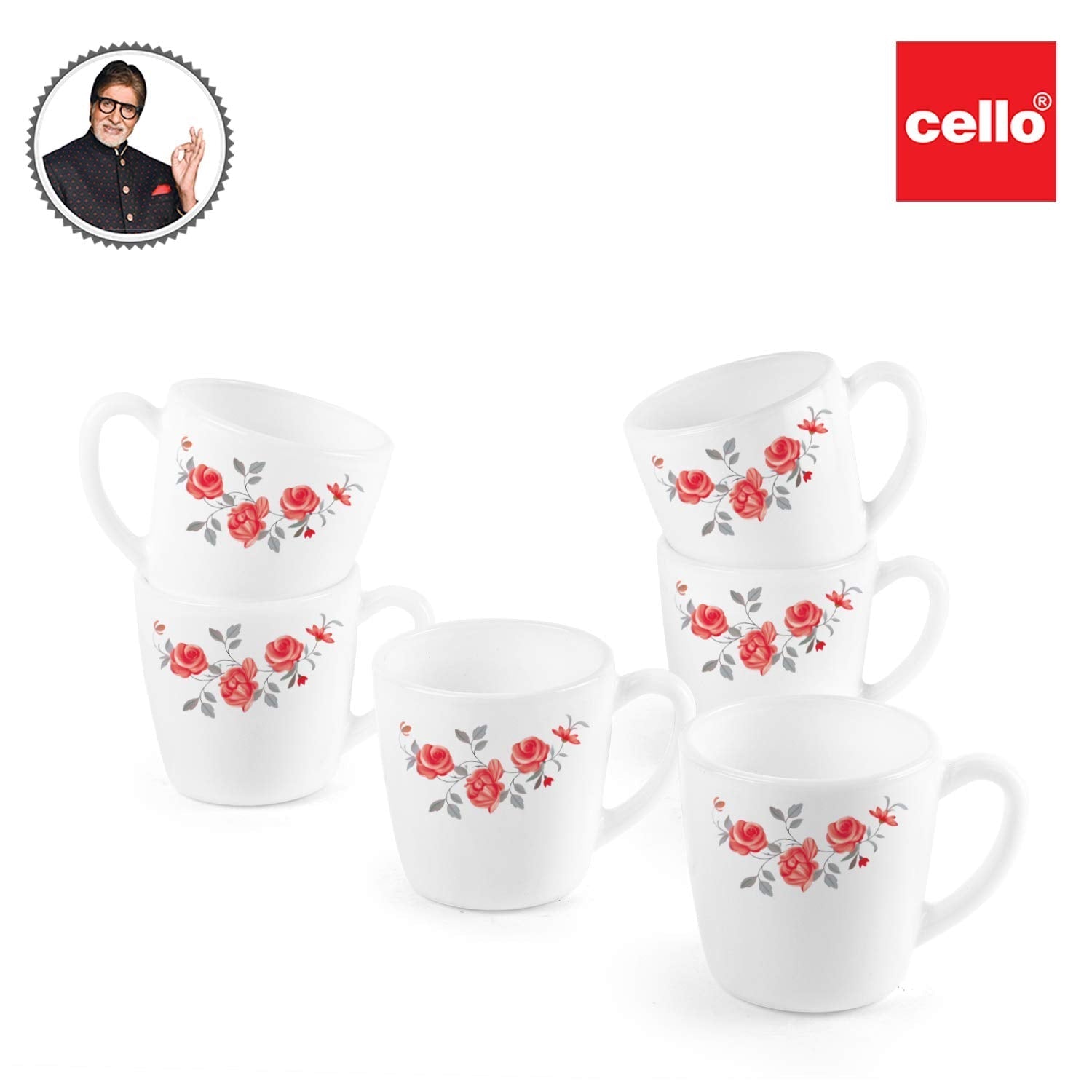 Cello Ricca Opalware Small Mug set of 6 in Red Rose Fantasy 100ml is crafted with precision using the most advanced German technology and adhering to European standards. Proudly made in India, these mugs are 100% vegetarian, bone ash-free, and composed of environmentally friendly materials.