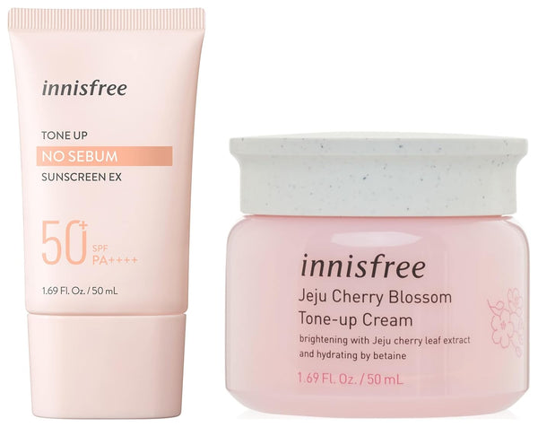 Innisfree Jeju Cherry Blossom Tone-Up Cream, 50ml & Innisfree Tone Up No Sebum Sunscreen SPF35 PA+++ Combo
