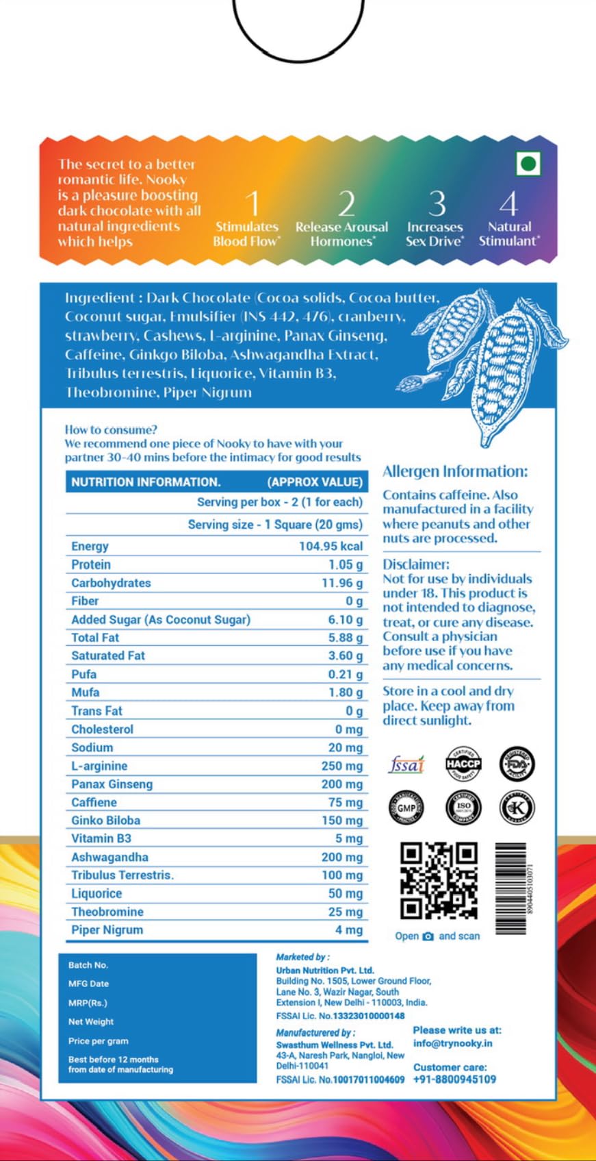 Details: Indulge in a delightful, mood-boosting experience with our Premium Aphrodisiac Chocolate for LGBTQ+, specially crafted to celebrate love, inclusivity, and pleasure for all. Made from rich, ethically sourced dark chocolate and a blend of all-natural aphrodisiac ingredients, this vegan-friendly treat is designed to elevate your mood and enhance your connection, whether you’re sharing it with someone special or simply indulging on your own.