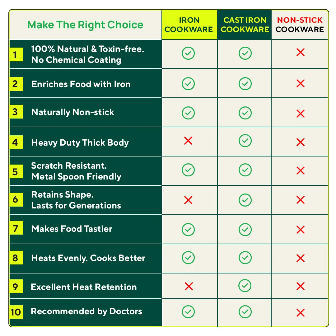 😎THE BEST CHOICE: If you are searching for a durable iron tawa online, then you must try this one! It is a healthier alternative to non-stick tawa that is generally covered with harmful coating. Do you wish to buy tawa online that is safe for your and your family’s health, then get this amazing tawa from The Indus Valley!