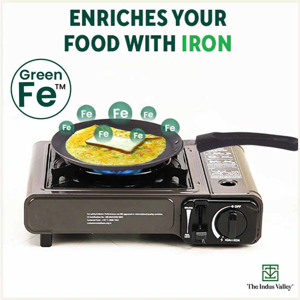 The Indus Valley’s Pure Iron Omelette Pan with Bakelite Handle – is made from 100% natural material, keeping your food safe from harmful chemicals. Unlike non-stick pans, this iron pan doesn't have any chemical coatings, making it a healthier choice for your cooking.