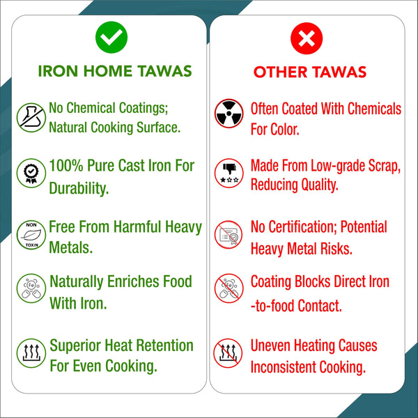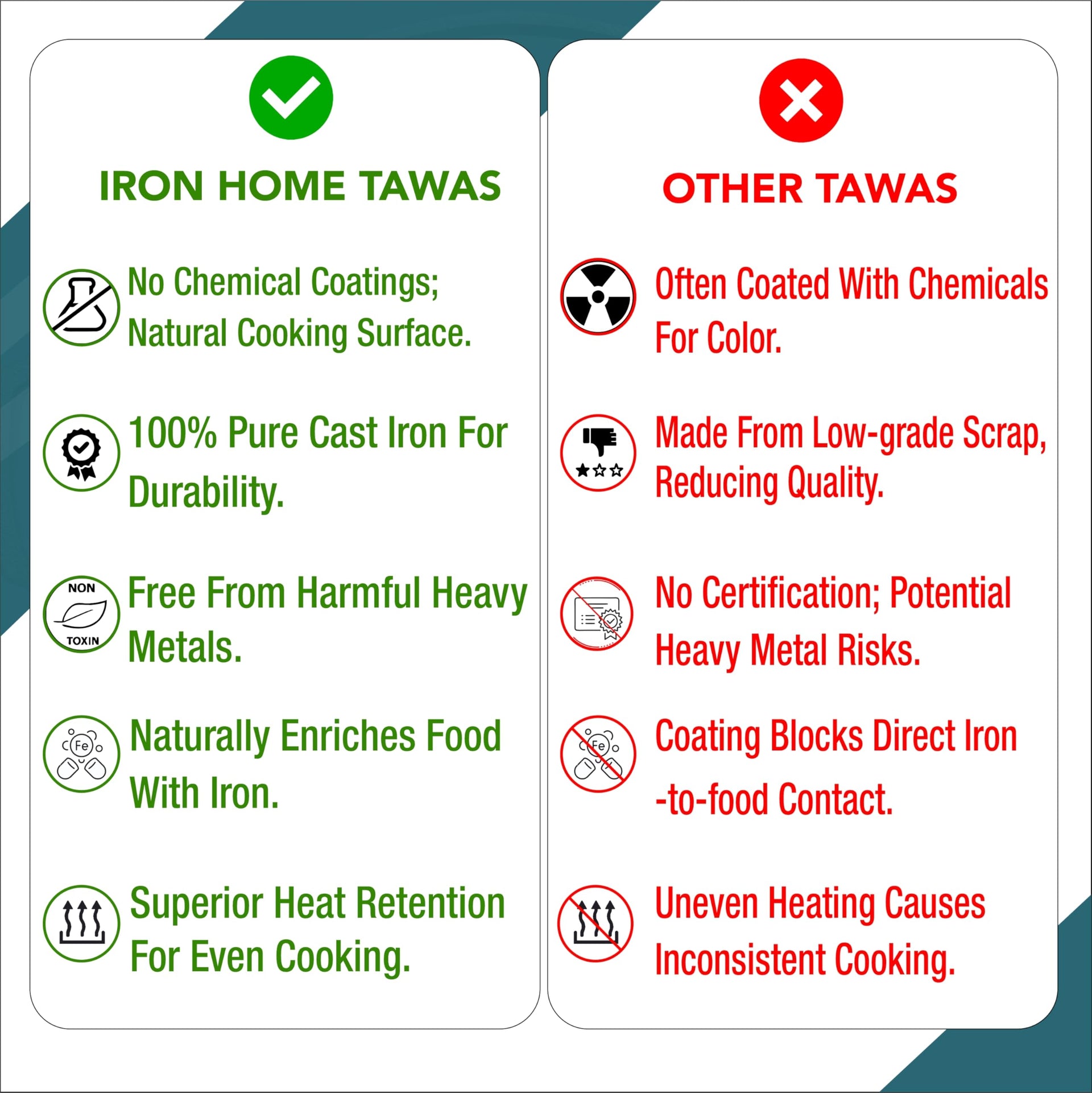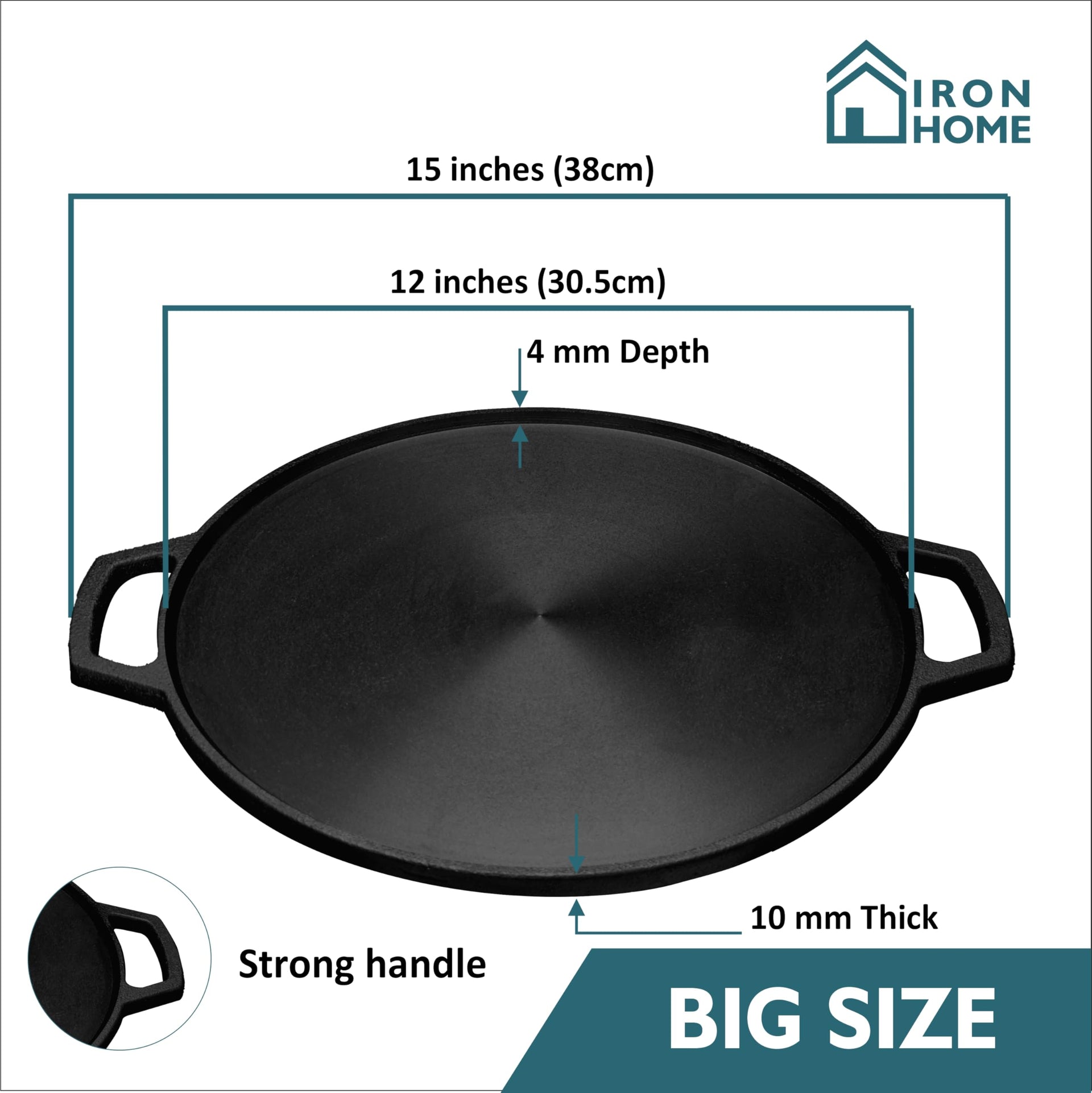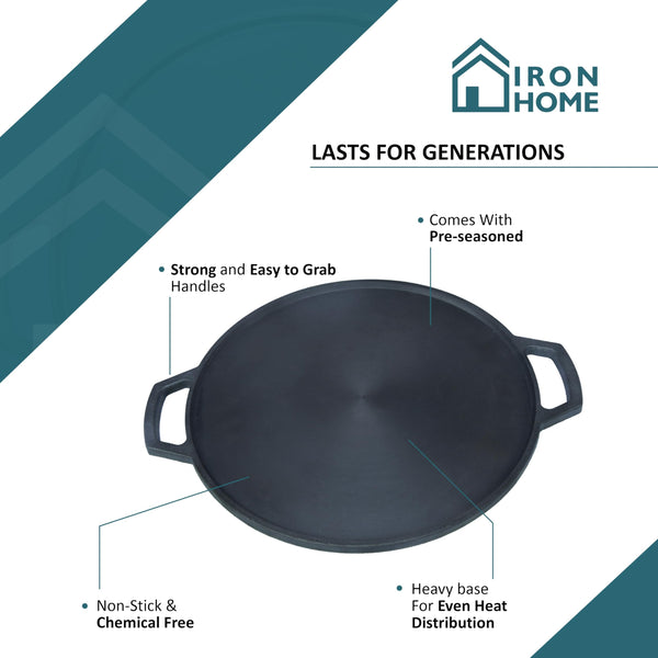 IRONHOME Premium 12 inches Cast Iron Dosa Tawa for Perfectly Crispy Dosas | Pre-Seasoned Big Size Dosa Tawa Cast Iron | Durable and Versatile Cast Iron Tawa | Traditional Cast Iron Dosa Tawa