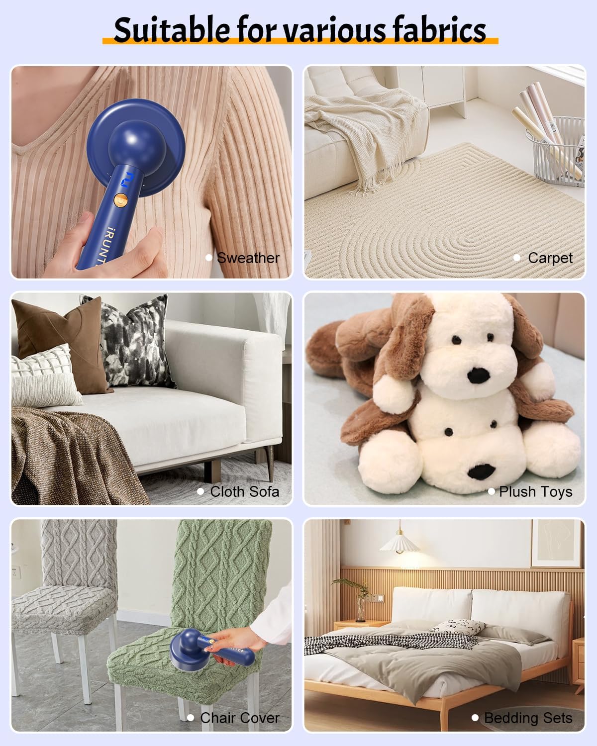 - ๐ ๐ฏ ๐ฆ๐ฝ๐ฒ๐ฒ๐ฑ๐ & ๐๐ถ๐๐ ๐ ๐ผ๐๐ ๐๐ฎ๐ฏ๐ฟ๐ถ๐ฐ: Multi-Speed Selection: Fabric shaver features three adjustable speeds, allowing you to choose the right setting for different types of fabrics. It's suitable for a wide range of fabric materials. It safely and efficiently removes fuzz, pills, and lint from scarves, sweaters, socks, blankets, curtains, plush toys, cushions, carpets, furniture, sofa, and more.