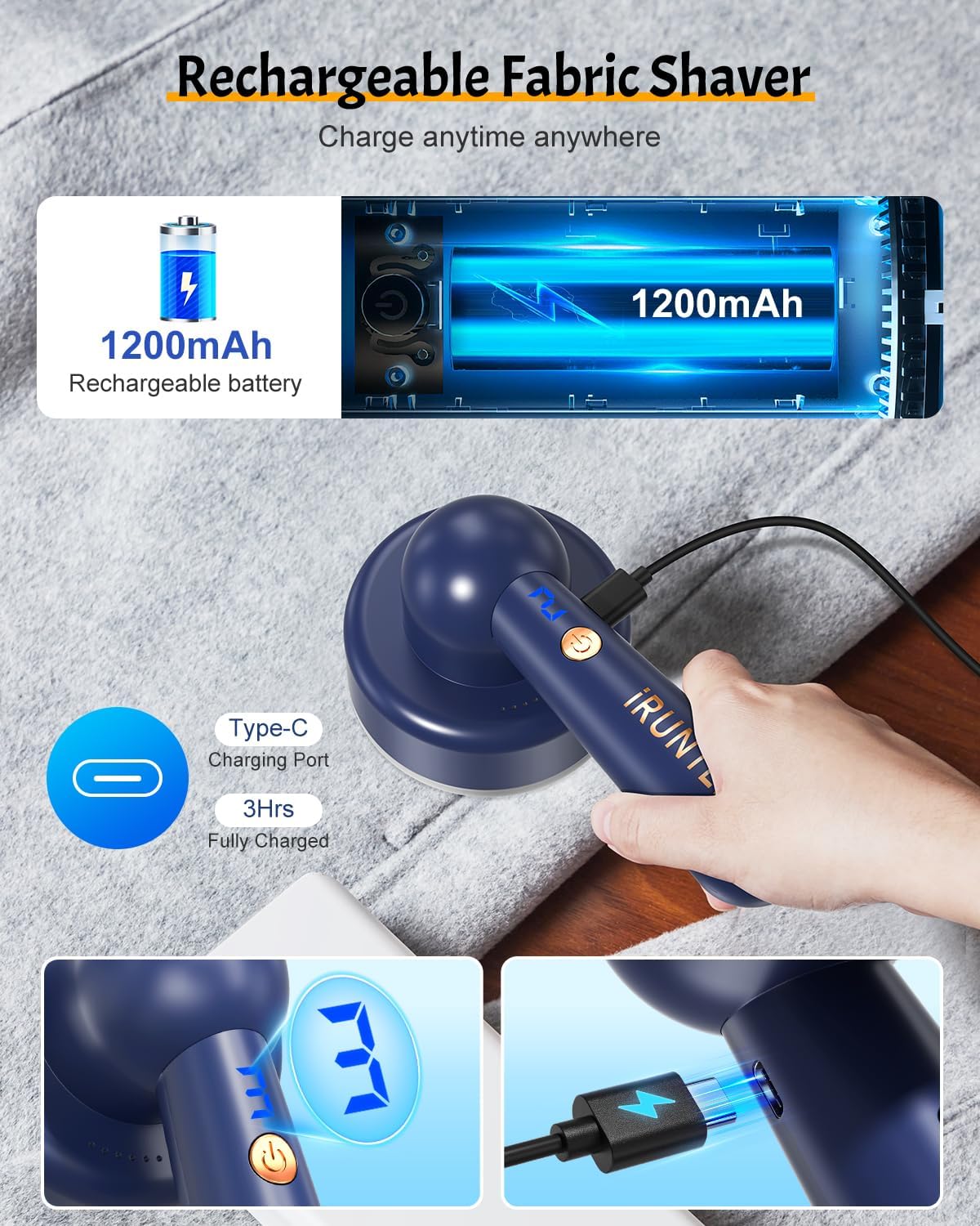 - ๐๐ฅ๐ฒ๐ฐ๐ต๐ฎ๐ฟ๐ด๐ฒ๐ฎ๐ฏ๐น๐ฒ & ๐๐๐ ๐๐ถ๐ด๐ถ๐๐ฎ๐น ๐๐ถ๐๐ฝ๐น๐ฎ๐: The high-definition screen of the lint remover will display the remaining battery power, speed levels. Lint remover features a built-in 1200mAh rechargeable battery that can deliver up to 2-4 hours of use on 3 hours of charging, eliminating the need for frequent battery replacements and saving you money on battery purchases.
