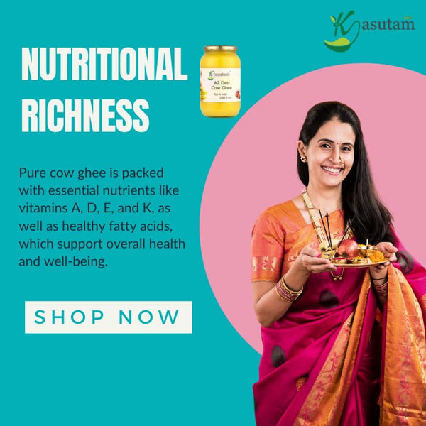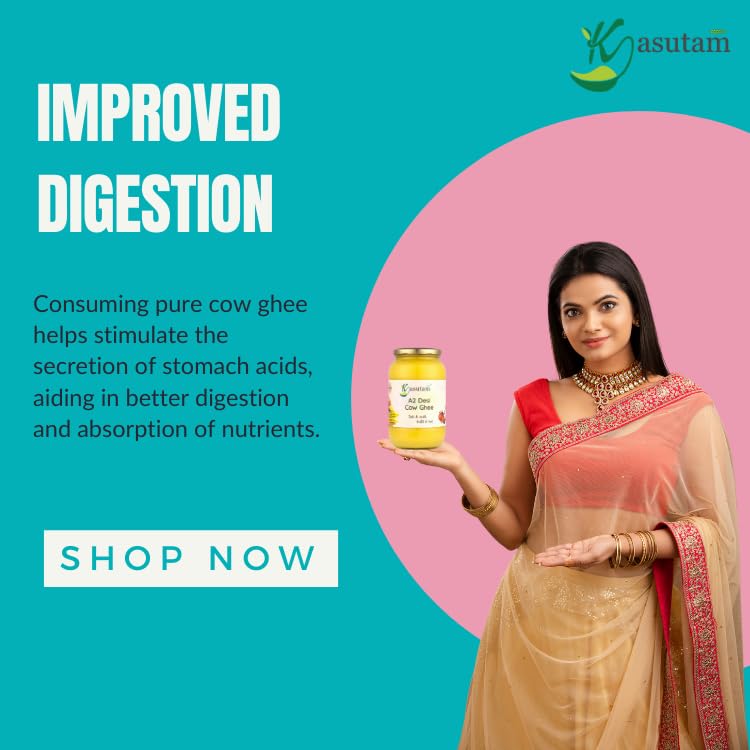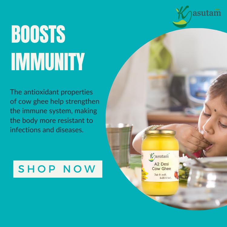 - BOOSTS IMMUNITY & DIGESTION – Kasutam A2 Desi Ghee Rich in A2 beta-casein, this ghee promotes better digestion, improves gut health, and strengthens immunity. It is an excellent choice for boosting metabolism and overall wellness.