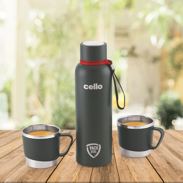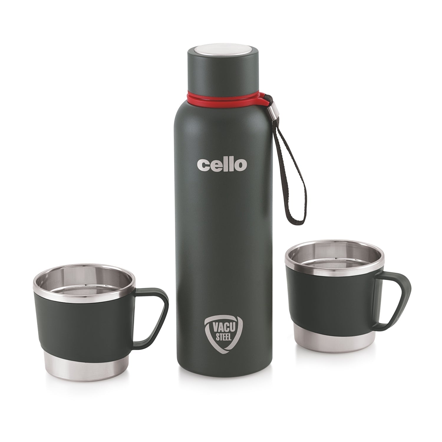 The Cello Kent Vacusteel Flask with Mugs Gift Set is a comprehensive 3-piece kit that combines style and functionality. Crafted with precision, this set includes a stainless steel vacuum-insulated flask and two matching mugs, ensuring your drinks stay hot or cold for extended periods. With a sleek and modern design, it's perfect for sipping your favorite beverages on the go, at home, or in the office. Stay refreshed, and stay stylish with Cello Kent.