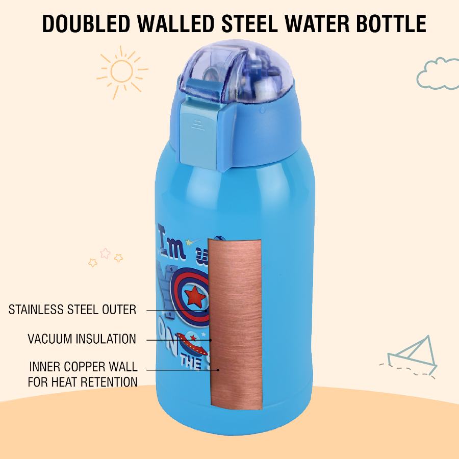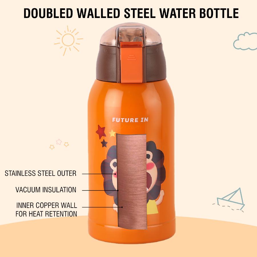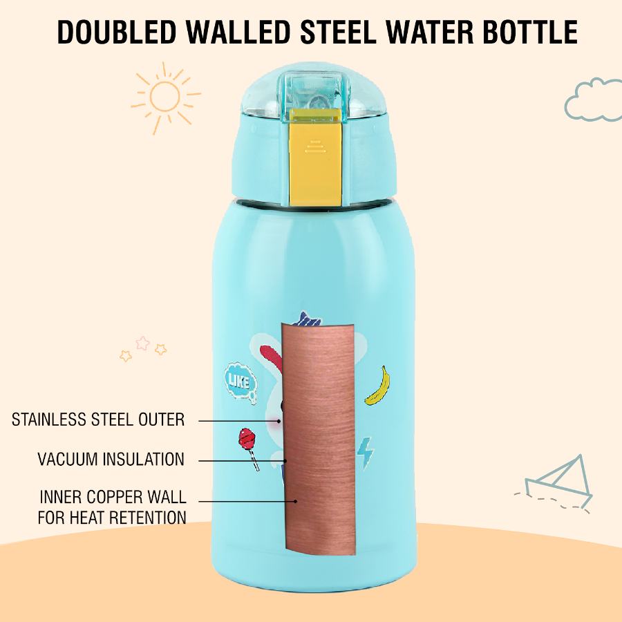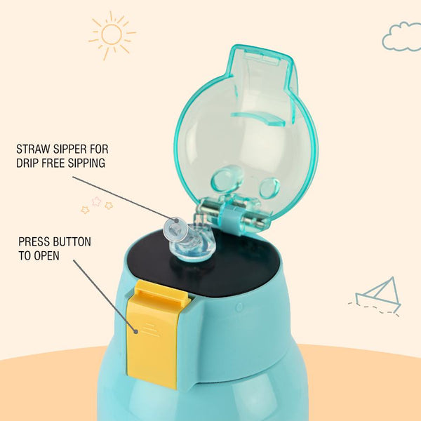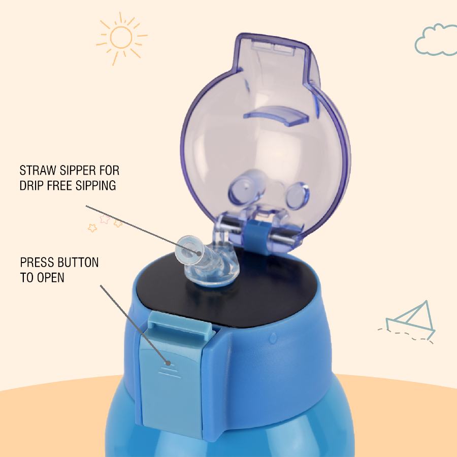 Introducing the Kido Kids Water Bottle by Cello Kidzbee, the perfect companion for your school-going champs! With a generous 500ml capacity, this adorable bottle features cute and quirky prints that kids will love. It comes with a matching jacket and adjustable neck strap for easy carry, or you can slip it into any school backpack without the jacket. Available in fun colors like Sky Blue, Sea Green, Pink, and Orange, it's sure to brighten their day.Keep your young ones refreshed and hydrated with the Kido Kids Water Bottle, a must-have for every school day adventure!
