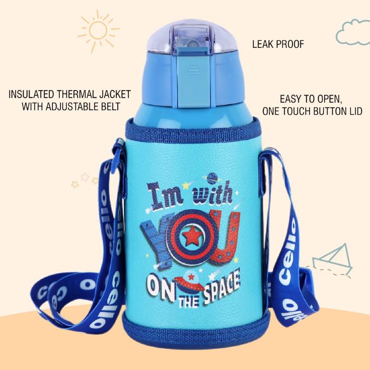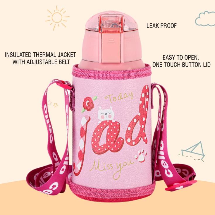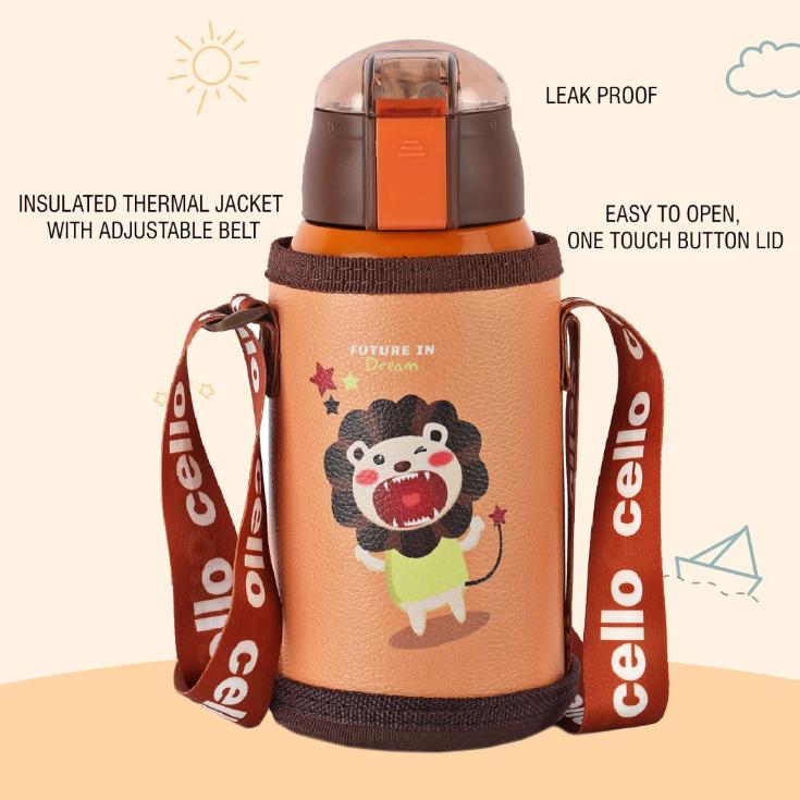 The Kido Kids Water Bottle, brought to you by Cello Kidzbee, boasts a generous 500ml capacity, making it the perfect hydration companion for your young ones. Its charm lies not just in its size, but also in its visually appealing design. Adorned with cute and delightful prints, this water bottle is an instant favorite among kids. Additionally, it comes complete with a matching jacket and an adjustable neck strap, making it not only practical but also a stylish accessory for your child.