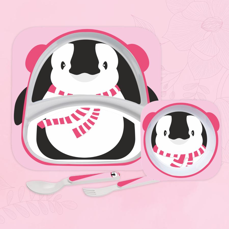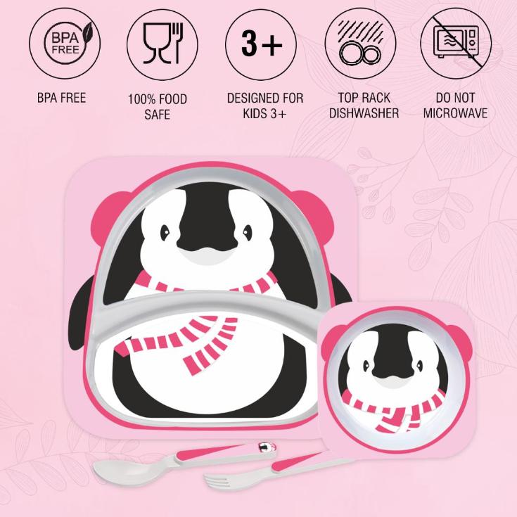 Introducing the Cello Kidzbee Kids Meal Set - a delightful dining experience for little ones! Crafted with care, this set features an adorable pink penguin design that's sure to capture kids' hearts. The heightening design of the plate ensures stability, preventing accidental spills on smooth surfaces. Made from high-quality melamine, it guarantees safety and hygiene during mealtime adventures. Lightweight and adorned with charming animal prints, this meal set quickly becomes a kid's favorite. Each set includes a plate, kids bowl, fork, and spoon, all boasting unique patterns that add a touch of whimsy to every bite. Ideal for gifting to friends, family, or colleagues, the Cello Kidzbee Kids Meal Set combines functionality with cuteness to make mealtime enjoyable and exciting.