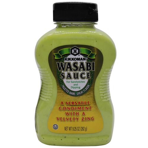 Kikkoman Wasabi Sauce is a spicy and creamy condiment. The main ingredient of this sauce is horseradish and mustard. It is spicy, hot, flavorful and green in colour. This pungent condiment is used for sushi and other foods. It can be used to add a real punch or a subtle accent to dips and sauces, pasta, chicken, tofu and more.