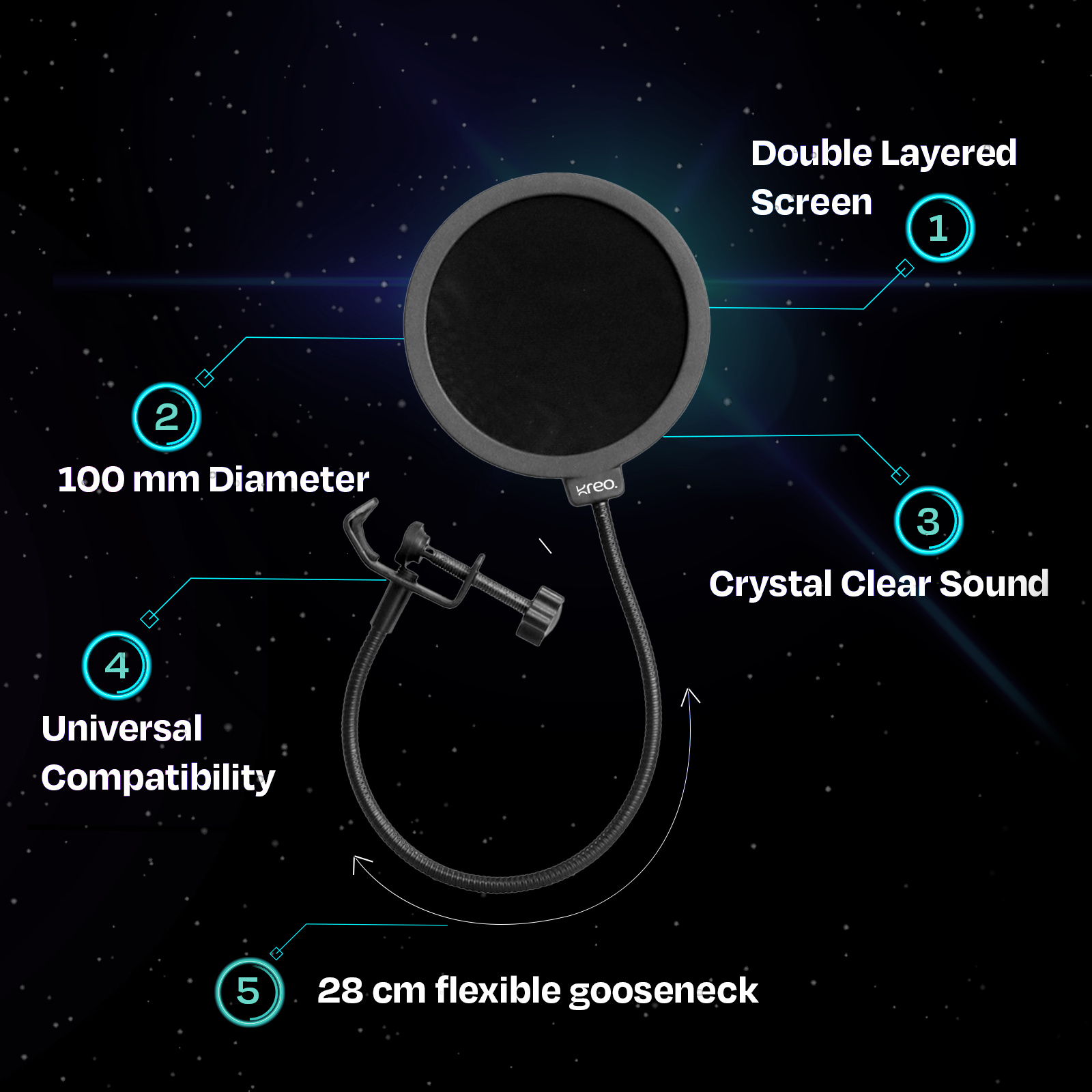 kreo Microphone Accessories Kit Boom arm + Shock Mount + Pop filter Combo