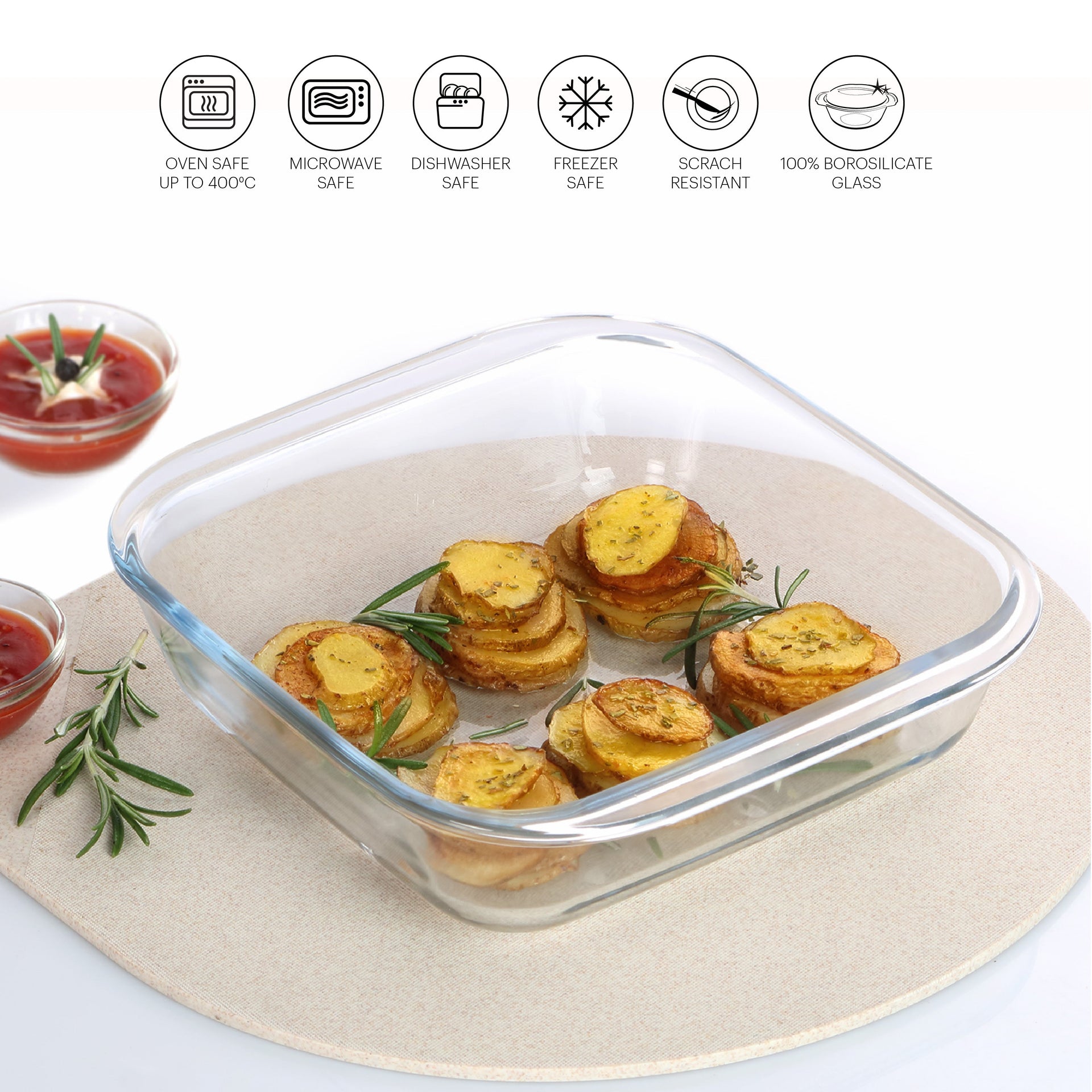 Introducing the Laura Square Glass Baking Dish, a versatile and essential addition to your kitchenware collection. With a generous capacity of 1100ml, this square glass baking dish is designed to meet a wide range of culinary needs. Crafted with clarity in mind, its crystal-clear glass not only showcases your culinary creations beautifully but also makes monitoring the baking process a breeze. Whether you're whipping up a batch of savory lasagna, a delectable casserole, or a delightful dessert, this baking dish is your reliable companion. Its square shape adds a touch of elegance to your presentation, making it ideal for both everyday meals and special occasions.