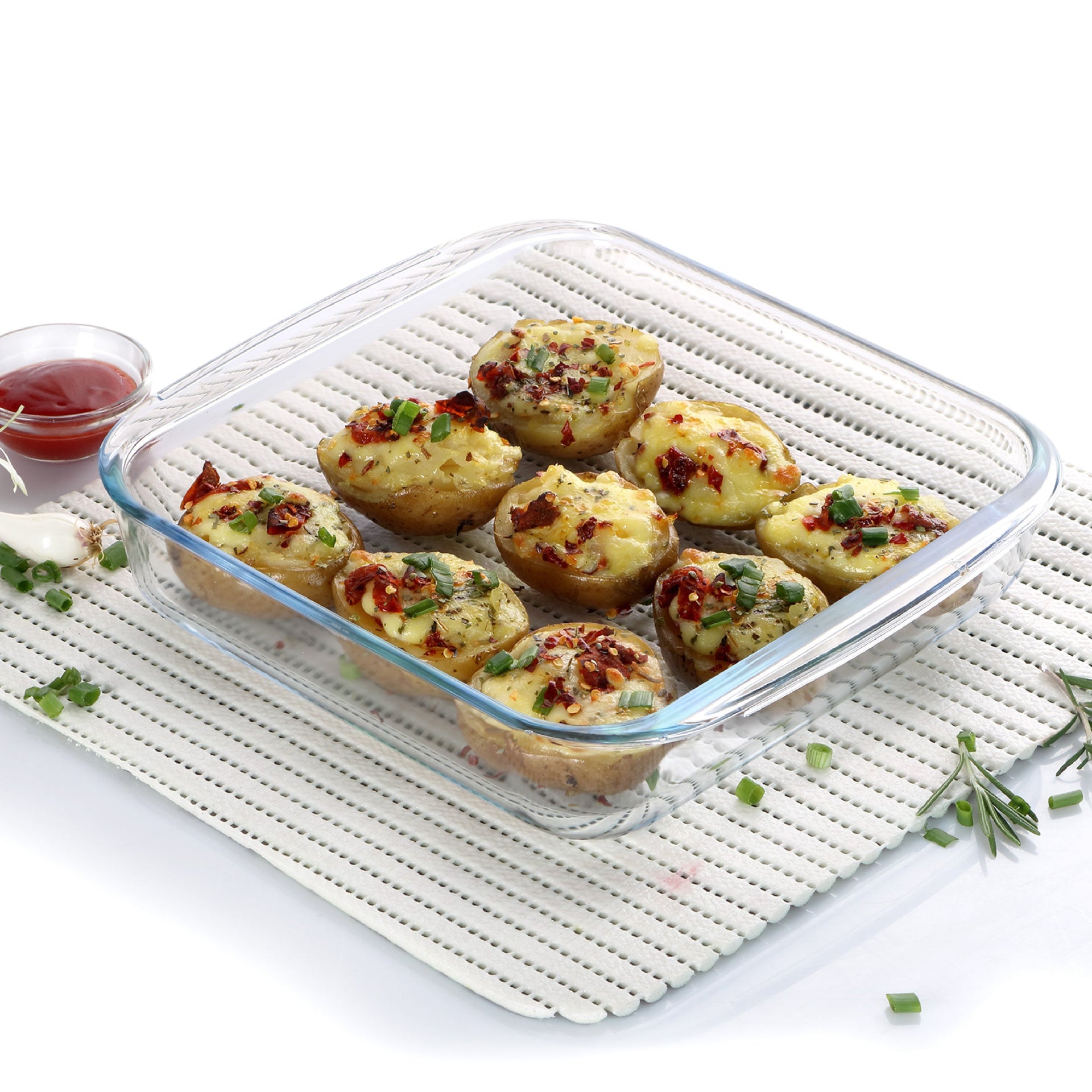 Introducing the Laura Square Glass Baking Dish, a versatile and essential addition to your kitchenware collection. With a generous capacity of 1700ml, this square glass baking dish is designed to meet a wide range of culinary needs. Crafted with clarity in mind, its crystal-clear glass not only showcases your culinary creations beautifully but also makes monitoring the baking process a breeze. Whether you're whipping up a batch of savory lasagna, a delectable casserole, or a delightful dessert, this baking dish is your reliable companion. Its square shape adds a touch of elegance to your presentation, making it ideal for both everyday meals and special occasions.