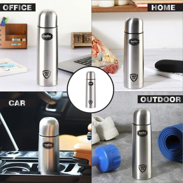 The Lifestyle Flask is your ideal companion for carrying tea or coffee to the office, ensuring it stays warm for extended periods. Crafted with precision, this 500ml Vacusteel Water Bottle features a thermal jacket and is made from fine-quality stainless steel, plastic, and rubber, making it a worthy investment for your beverage needs. It boasts high-quality steel with thermoseal technology and an inner copper coating for exceptional heat retention. The 100% vacuum-insulated stainless steel body effectively keeps your beverages hot or cold. Its dual-purpose lid can be used as a cap or a cup, adding versatility for various drinks like tea, coffee, or juice, suitable for both indoor and outdoor use.