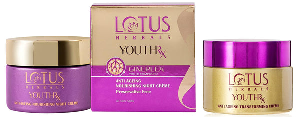 Lotus Herbals Cream Youth Rx Anti-aging Skin Care Range, Youth Rx Anti-Aging Transforming Crème SPF 25, PA +++- 50g And Herbals YouthRx Anti-Ageing Nourishing Night Creme, 50g