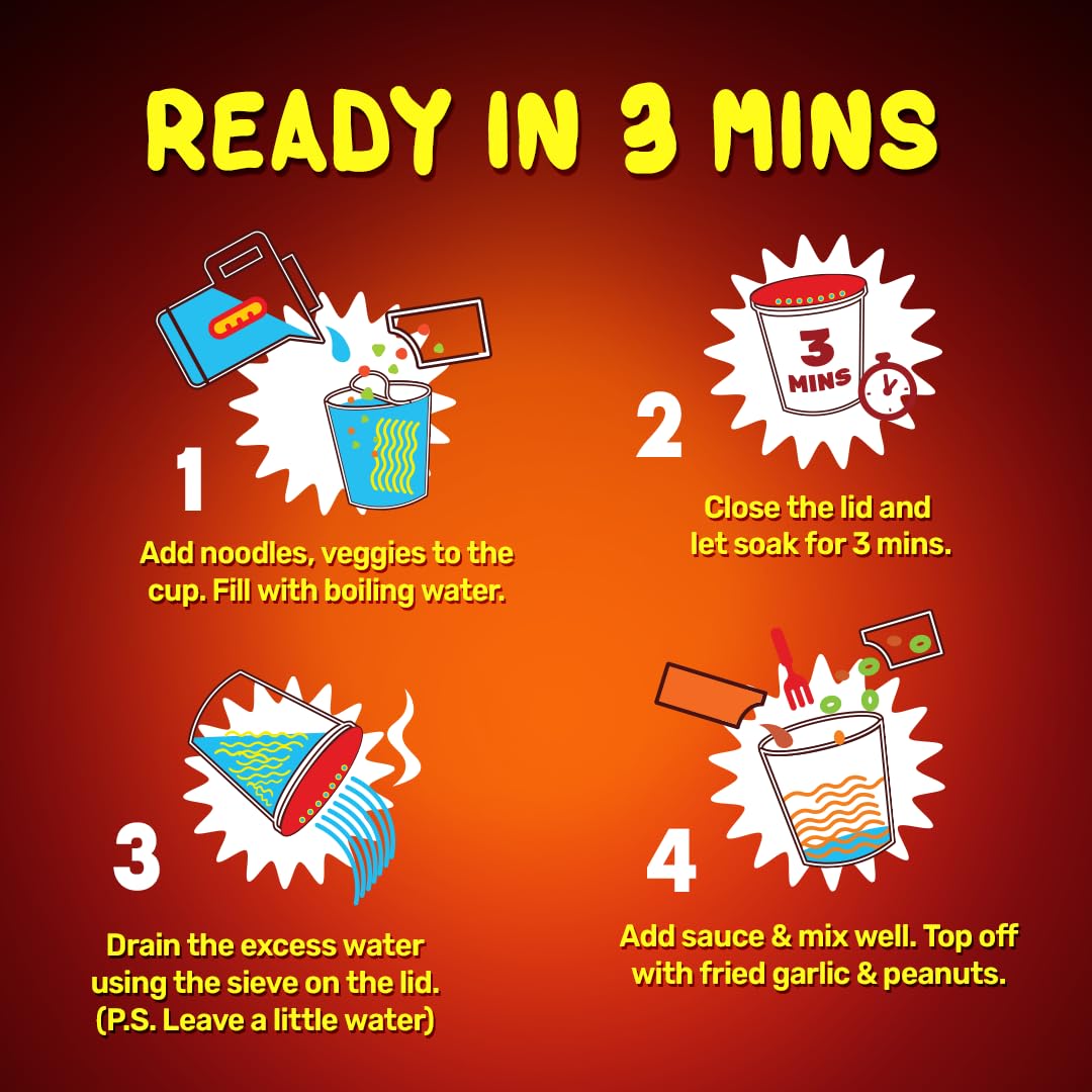 25x MasterChow Instant Cup Noodles - 2X Spicy Korean Noodles | Delicious Saucy Authentic Korean Taste with Extra Veggies | 100g - Pack of 25