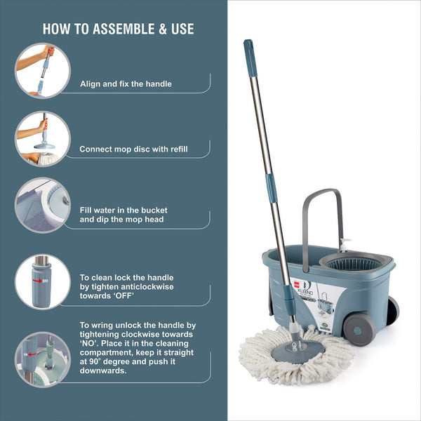 Introducing Kleeno by Cello's Max Clean Spin Mop Bucket with Soap Dispenser, a revolution in home cleaning. Crafted from premium quality plastic, this mop bucket is not just functional but a stylish addition to your cleaning arsenal, available in elegant Grey and Beige hues. The secret lies in its microfiber magic, designed to delve deep into the nooks and crannies, effortlessly lifting and trapping even the finest dust and dirt particles. But what truly sets Max Clean apart is its soap dispenser feature, allowing you to infuse your cleaning solution directly into the water. Say goodbye to messy hands with the convenient water outlet plug for easy drainage. The Max Clean's wringer bucket is the real hero, wringing out excess water from your mop without any manual effort, making home cleaning a breeze. Kleeno by Cello - Where innovation meets cleanliness.