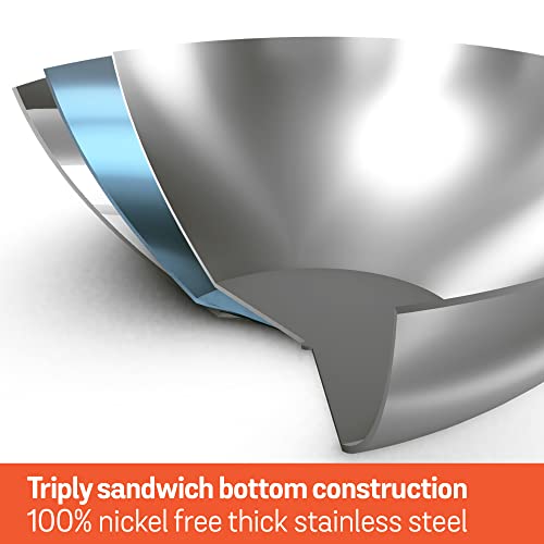 Details: Highly durable triply cookware for high-performance cooking: The most functional tri-ply cookware made from three different layers of metals bonded together. Pure aluminium core between 2 layers of pu ...