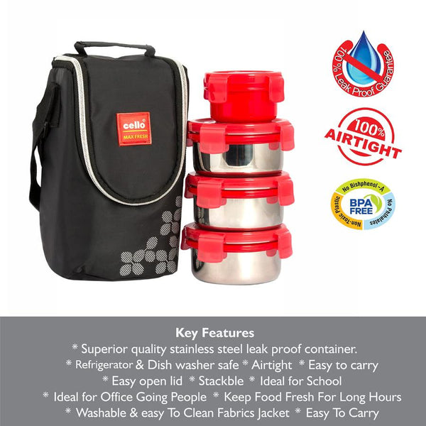 - MF Click 4 Steel Lunch Box set offers versatility and convenience in meal packing and organization, available in blue, green, red, and brown to cater to your color preferences.