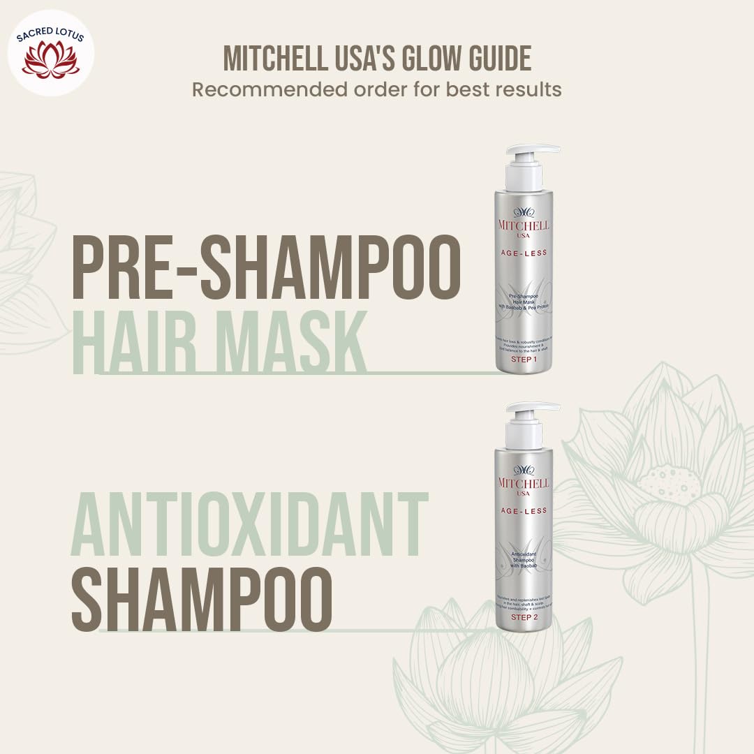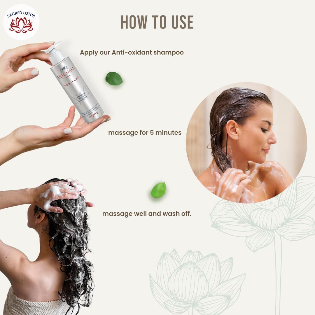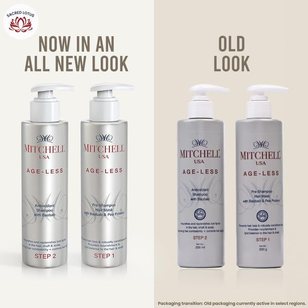 Details: Ageless Hair Wash Regime (Pre-Shampoo Mask + Antioxidant Shampoo) (200gms + 200ml) As we age our hair strands become scantier, thinner and grey. Then the onslaught of hair colour pollution, Lifestyle, etc leads to hair follicles to stop producing new hair and visible balding Our first of a kind Anti-aging Hair Wash Regimen with Baobab Pea Protein slows down hair loss, provides nourishment, maintains lipid balance and controls hair aging