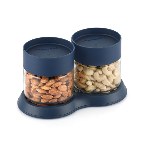 Product Description Discover the perfect blend of style and functionality with Cello's Modustack Glassy Tray Gift Set. This set of three pieces includes airtight glass snack jars and a coordinating tray, making it effortless to store and serve your favorite snacks The airtight lids with stacking capability and a non-slip rim, along with classic shades to suit any aesthetic, make this Modustack tray set a versatile addition for everyday use and an exceptional gift option.