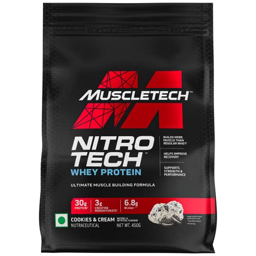 MuscleTech Nitro-Tech Whey Protein | Protein + Creatine for Muscle Gain | Muscle Builder for Men & Women | Sports Nutrition | Cookies & Cream, 450g