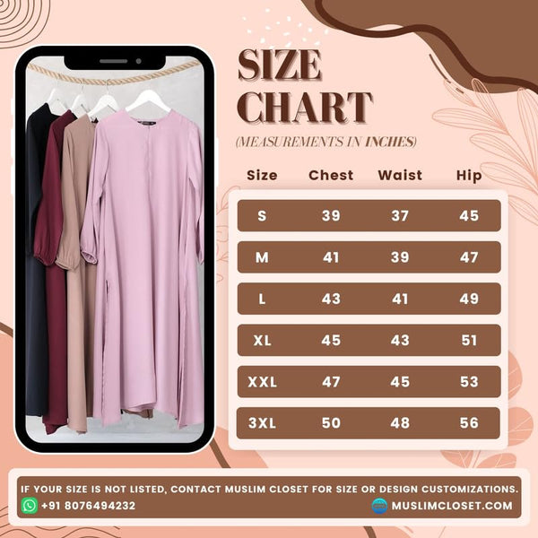 Muslim Closet Two Pieces Abaya Dress with Zip On Front made with Nida Matte Fabric - Knee length Burqa for Women and Girls