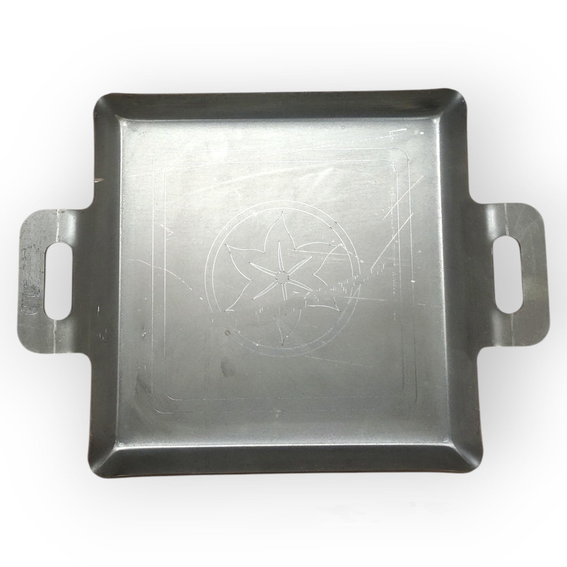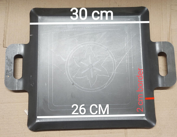 Details: This iron tawa, or flat pan, is a versatile kitchen essential for Indian cooking. Measuring 12 inches across, it provides ample space for preparing a variety of dishes like dosas, parathas, and rotis. The sturdy construction ensures even heat distribution, while the embossed design in the centre adds a touch of elegance. With its practical size and durable build, this tawa is perfect for everyday use in your home kitchen. Its simple yet functional design allows you to effortlessly prepare delectable Indian flatbreads and more. Crafted from high-quality iron, this tawa is built to last and will become a reliable companion in your culinary adventures.