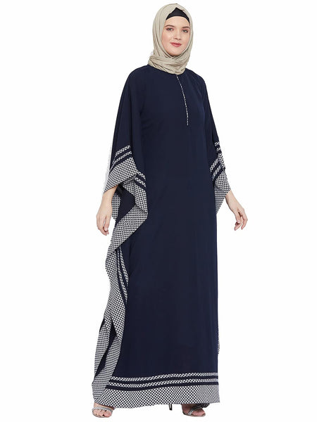 Women's full Kimono Sleeve Navy Blue Abaya . Soft polyester fabric. No colour Bleeding. No shrinkage after wash. Normal hand/ machine wash.