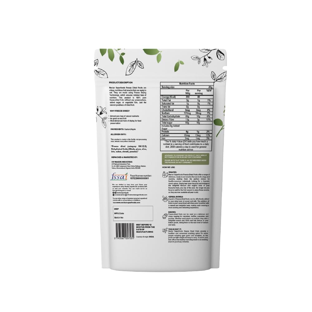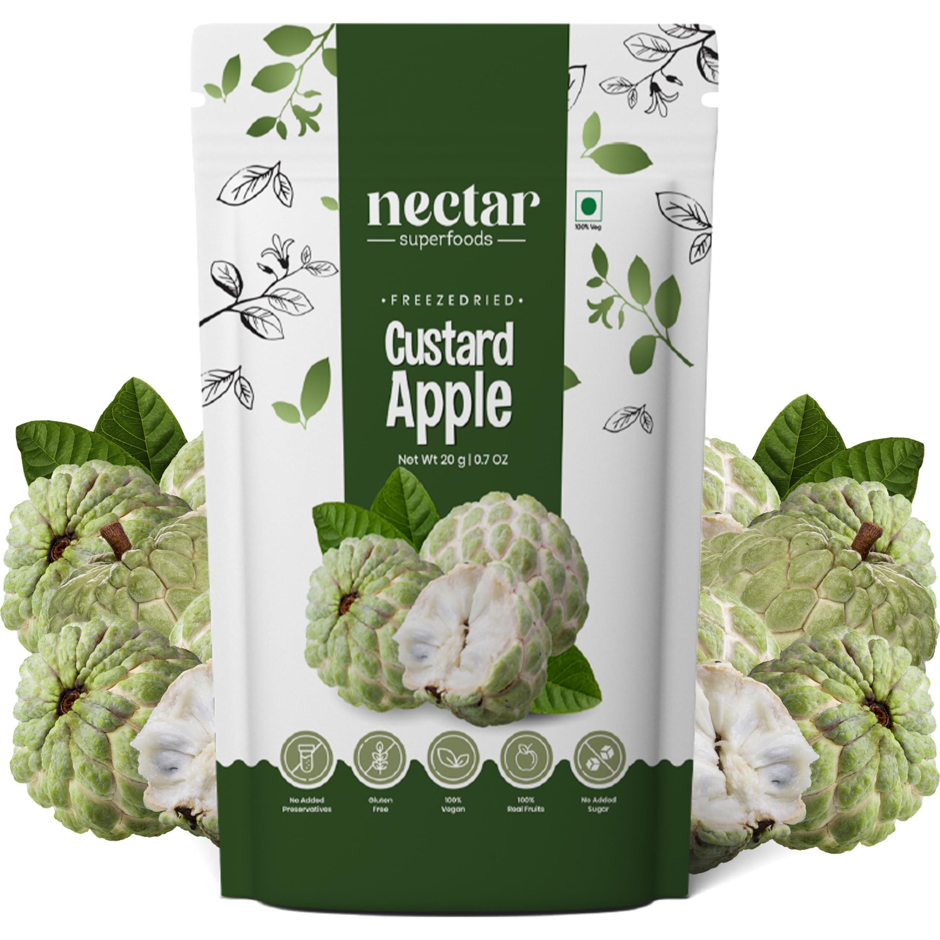 Nectar Superfoods Freeze Dried Custard Apple | No Preservatives, No Added Sugar, Healthy Dried Fruit | 100% Natural, Vegan, Gluten Free Snack for Kids and Adults | 20 gram Pouch (PACK OF 1)