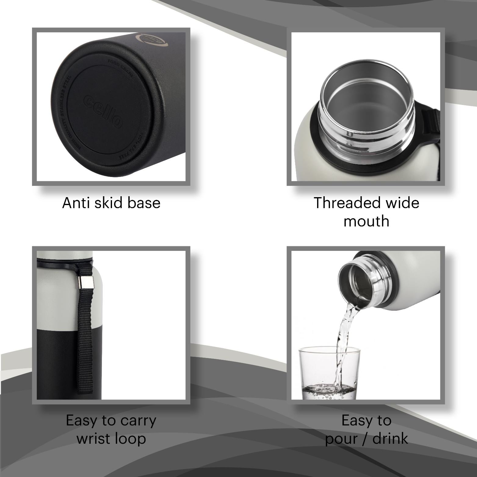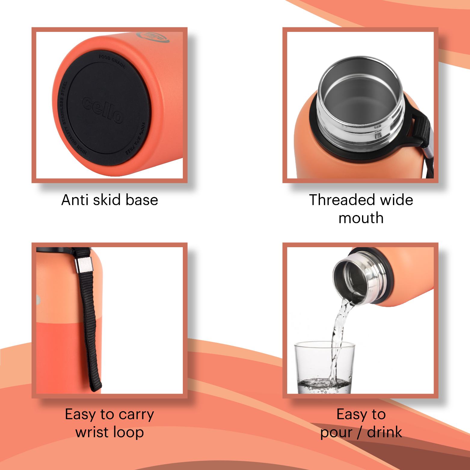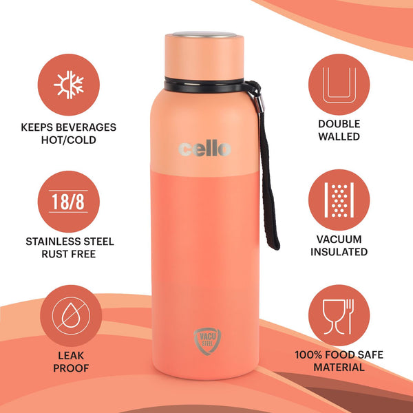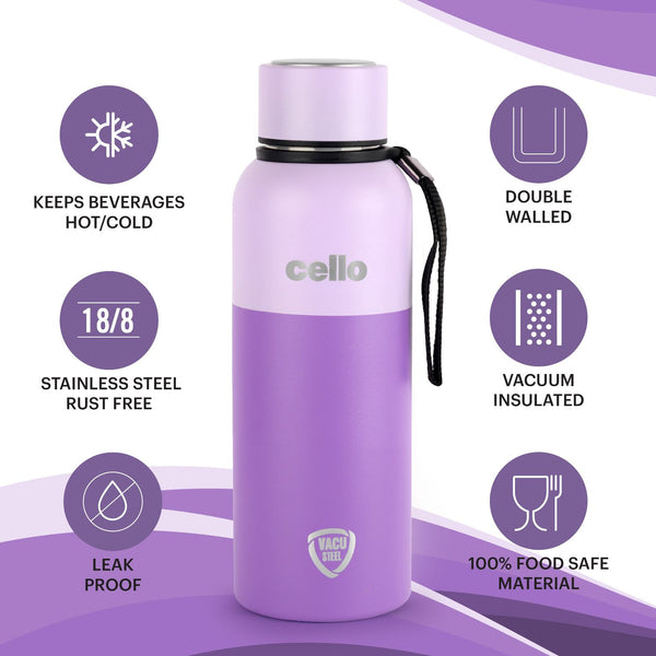 Neo Kent Flask, Vacusteel Water Bottle dual tones collection is the epitome of style and functionality. Stay hydrated in vibrant colors, from the soothing Blue to the nature-inspired Green and the elegant Peach. With a sleek Black option, timeless Grey, and a touch of royalty in Purple, there's a shade for every taste. Crafted with precision using Vacusteel technology, this water bottle ensures your beverages stay at the perfect temperature for longer. Elevate your hydration experience with Neo Kent, where design meets performance.