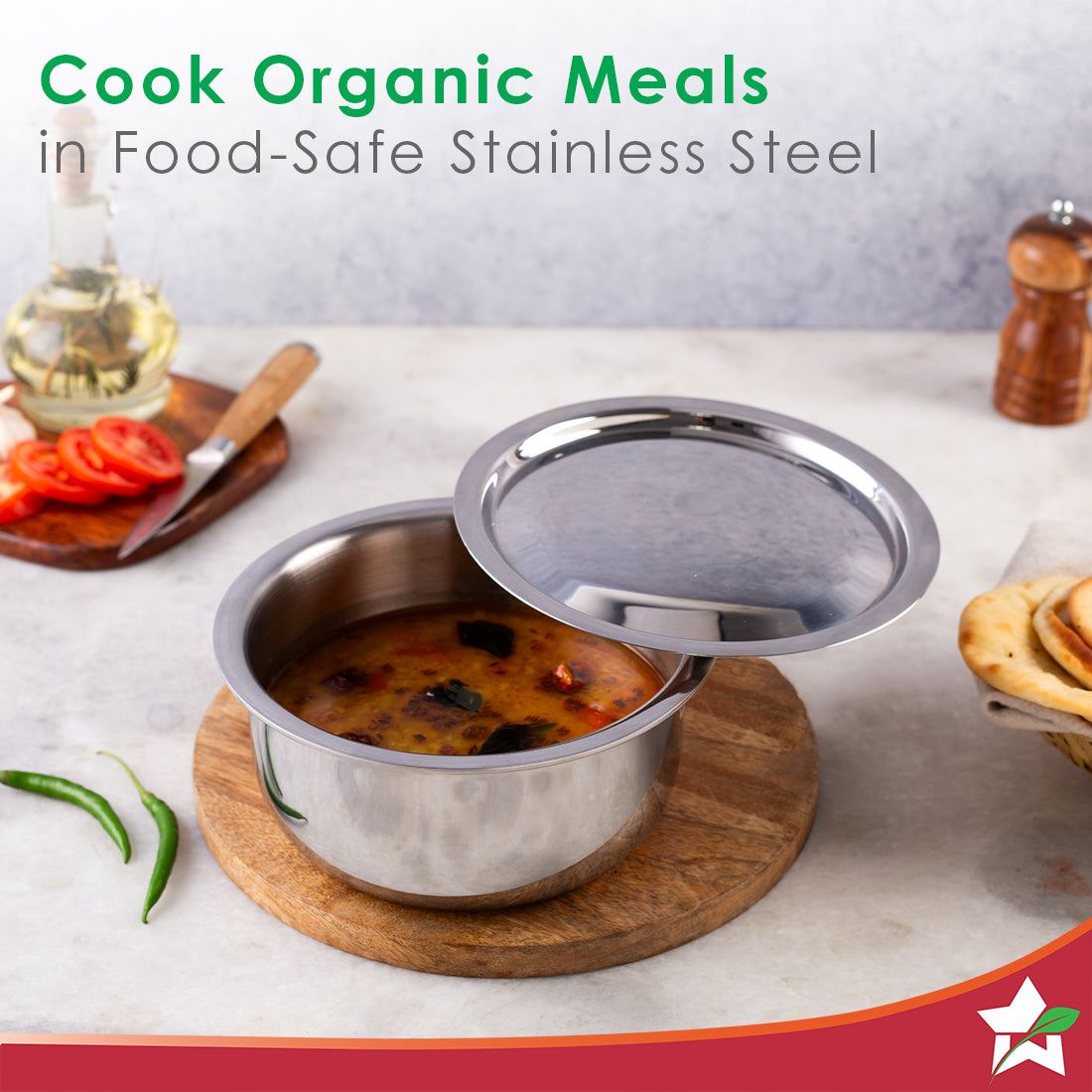 Nigella Tri-ply Stainless Steel 16 cm Cooking Pot | 2.6mm Thickness | Silver