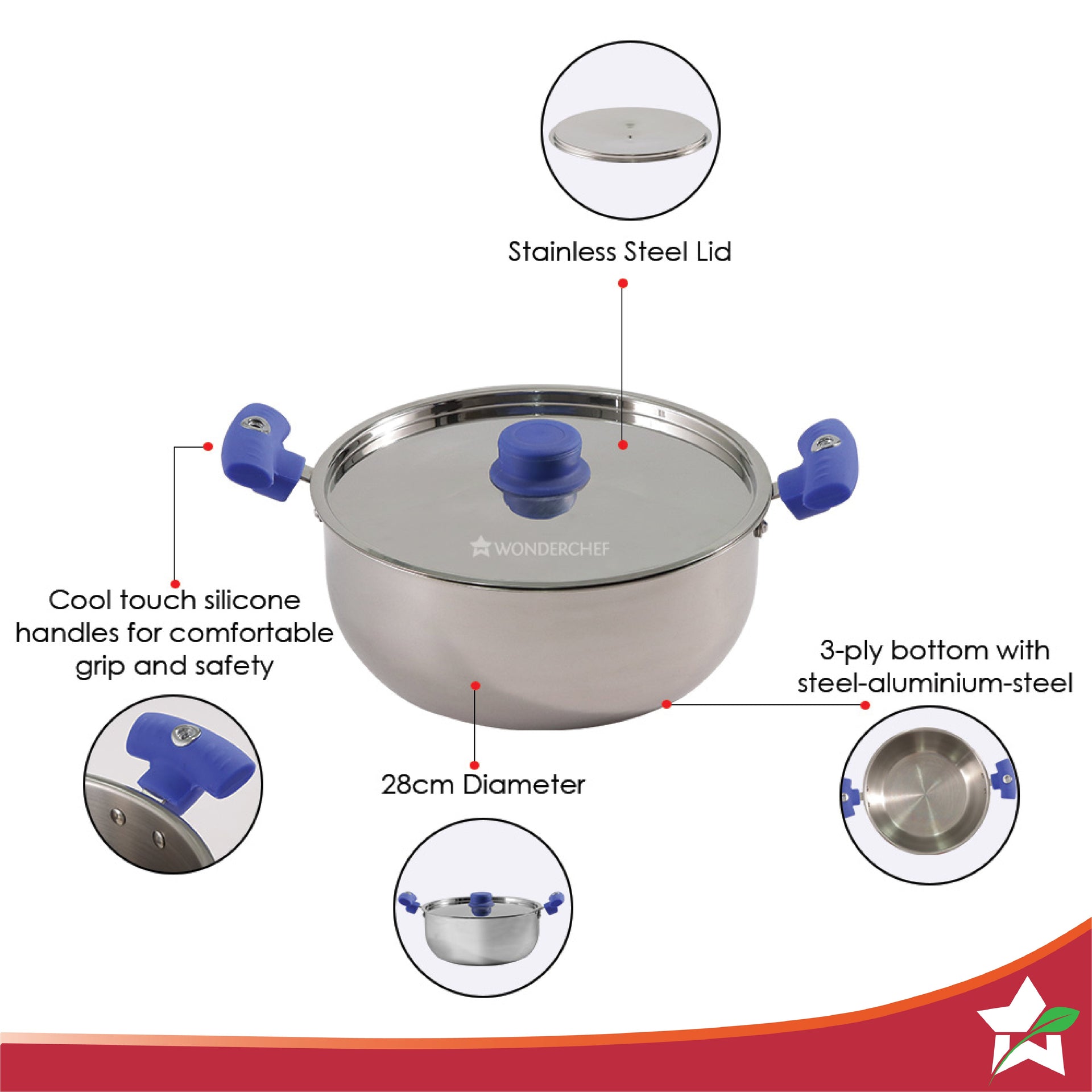 Enjoy tasty healthy delicacies with Wonderchef Biryani Pot. The thick bottom features steel-aluminium-steel layers for excellent heat retention and the perfectly fitting lid retains all the essential flavours. With a capacity of 6.6L, get ready to relish the flavour some delights with the entire family.