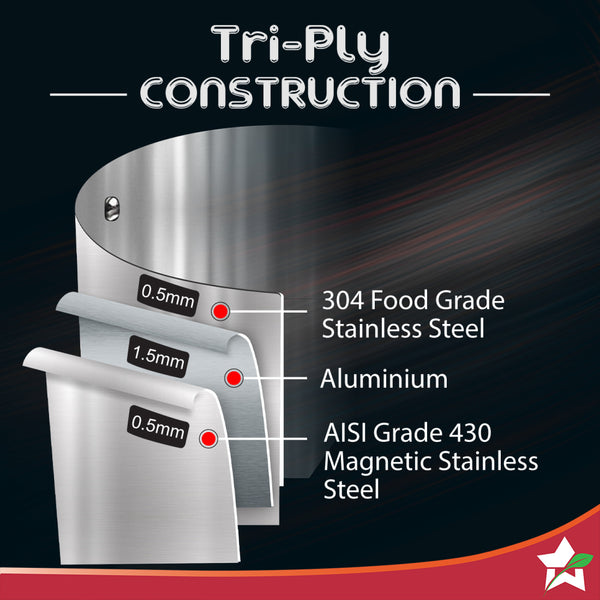 Nigella Tri-ply Stainless Steel 22 cm Fry Pan | 1.8 Litres | 2.5 mm Thickness | With Induction base | Compatible with all cooktops | Riveted Cool-Touch Handle | 10 Year Warranty
