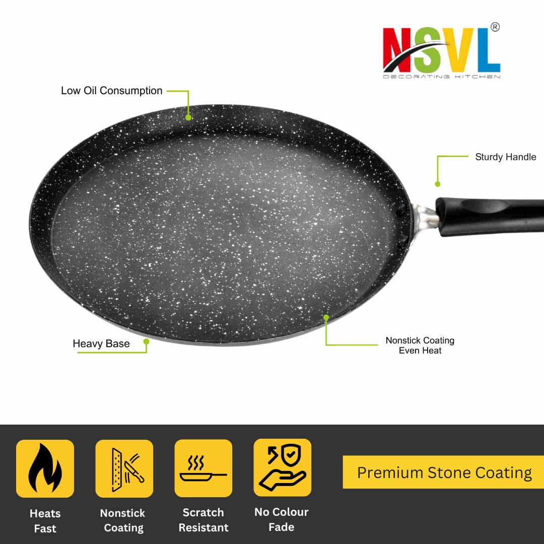 Nsvl Aluminium Non-Stick Dosa Tawa with Handle| Granite Finish | Pfoa Free | High Temperature Resistant Exterior Coating | 25 Cm | Black (DOSA TAWA Premium)