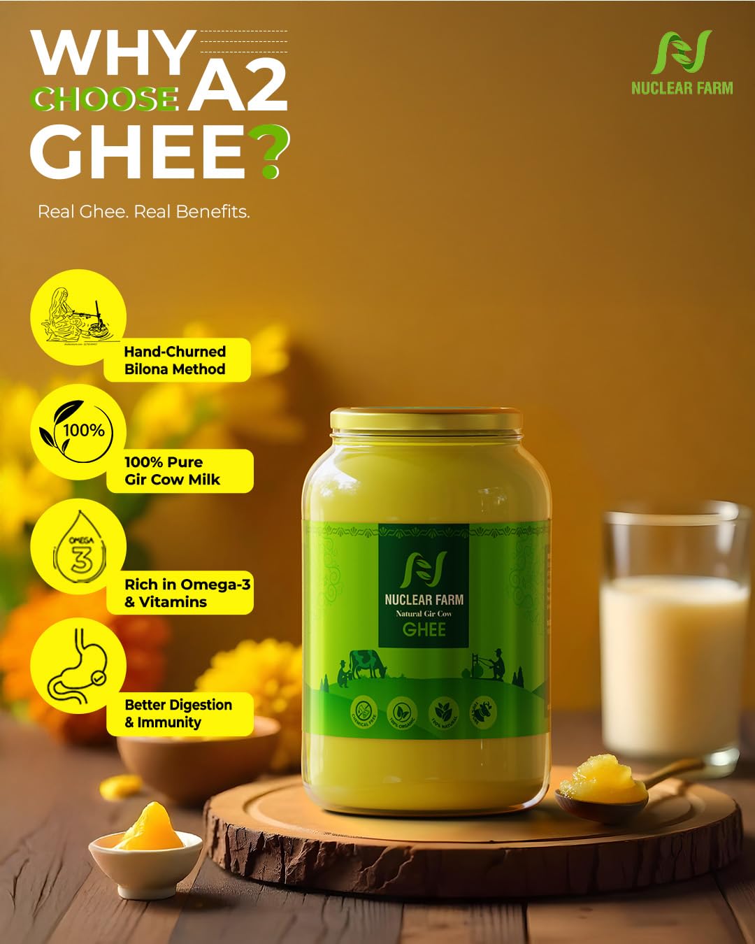 - A2 Gir Cow Ghee & Desi Ghee and its Indian heritage always have a story to tell,NUCLEAR FARM use traditional Bilona method for Curd Churning process to maintain quality and purity .
