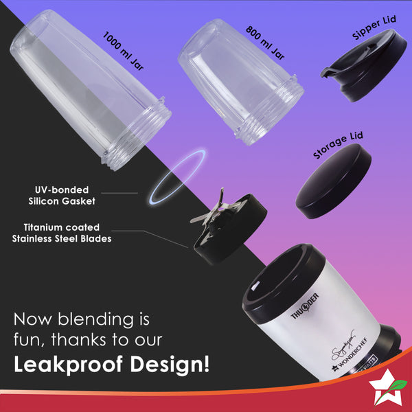 Nutri-blend Thunder Mixer, Grinder, Blender & Smoothie Maker | 1000W 22000 RPM 100% Full Copper Motor | SS 6-Blade Assembly | 2 Unbreakable Tritan Jars | 2 Years Warranty | Recipe Book By Chef Sanjeev Kapoor | Black Silver