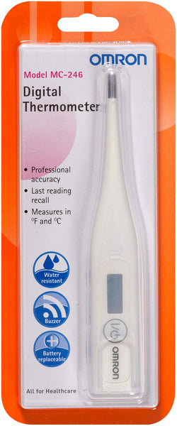 Omron digital thermometer offers a safe, accurate and quick temperature reading. It eliminates any worries about broken glass or mercury hazards.