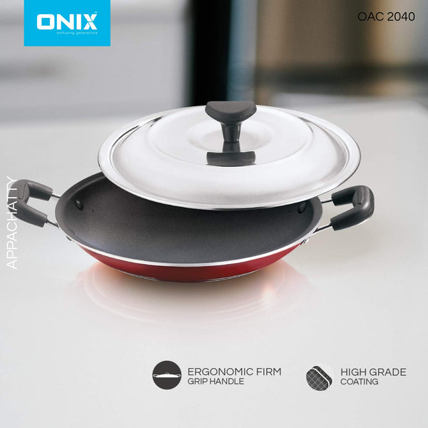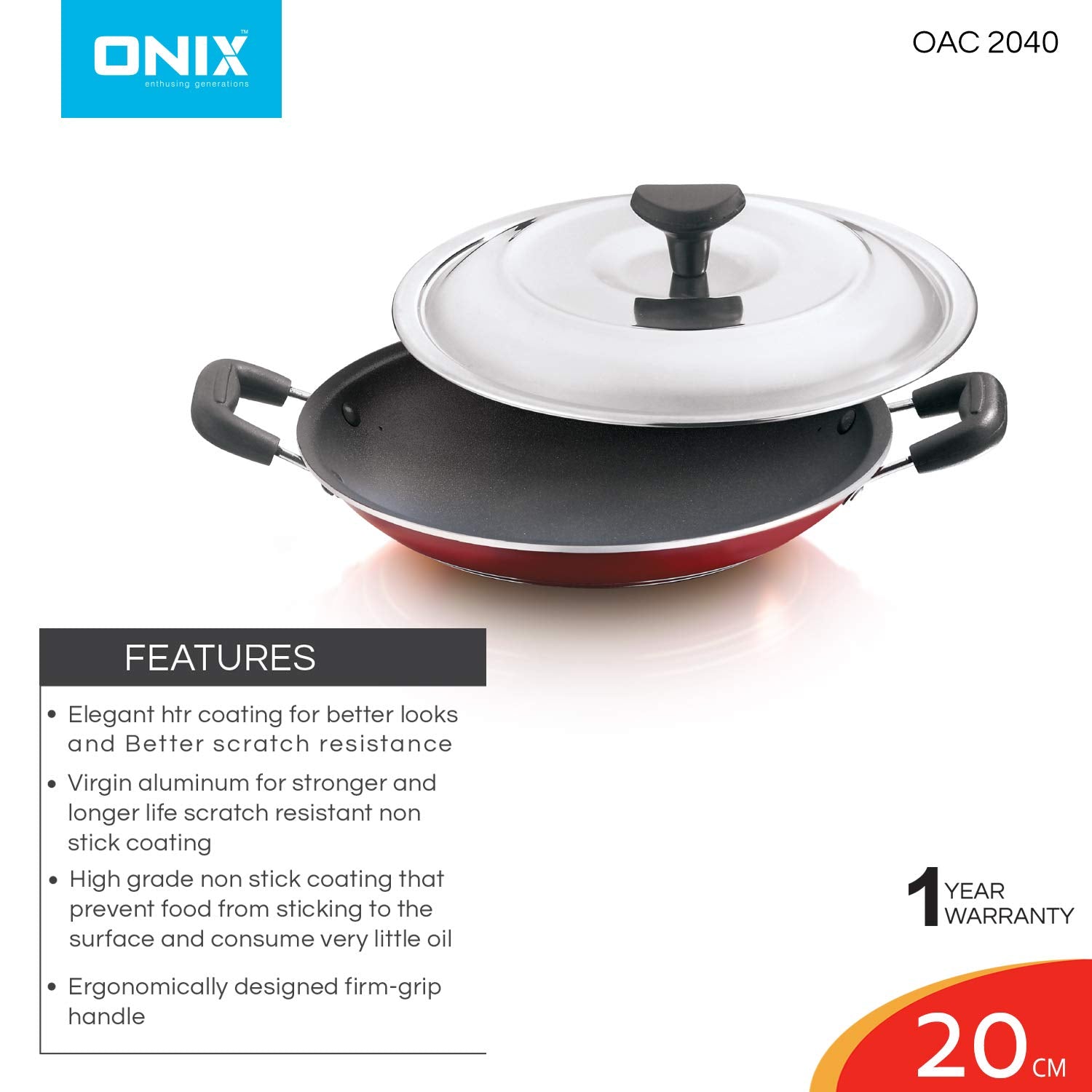 Details: Onix believe in making life simple with its positive innovations in every stage of our lives. Itβs about a decade of experience earned over the years and technological updations, we brought into the common man. This philosophy has helped us scale more heights over the years and has won brand onix, the trust among the people, across the country. Onix introduces you OAC 2040N non-stick Appachatty, the appachatty is made of high-grade aluminium material. This appachatty comes with high grade non-stick coating which helps you to provide the best cooking experience. Uniform heat distribution helps to get the food warm very faster. With this appachatty you only required less oil to cook food. This appachatty handle comes with heat proof bake lite handle which helps you to have tension free cooking. Onix Has Proved Their Excellence In After Sales Service With The Help Of Techzone Services, Who Holds 30+ Service Centers In And Around The Country.